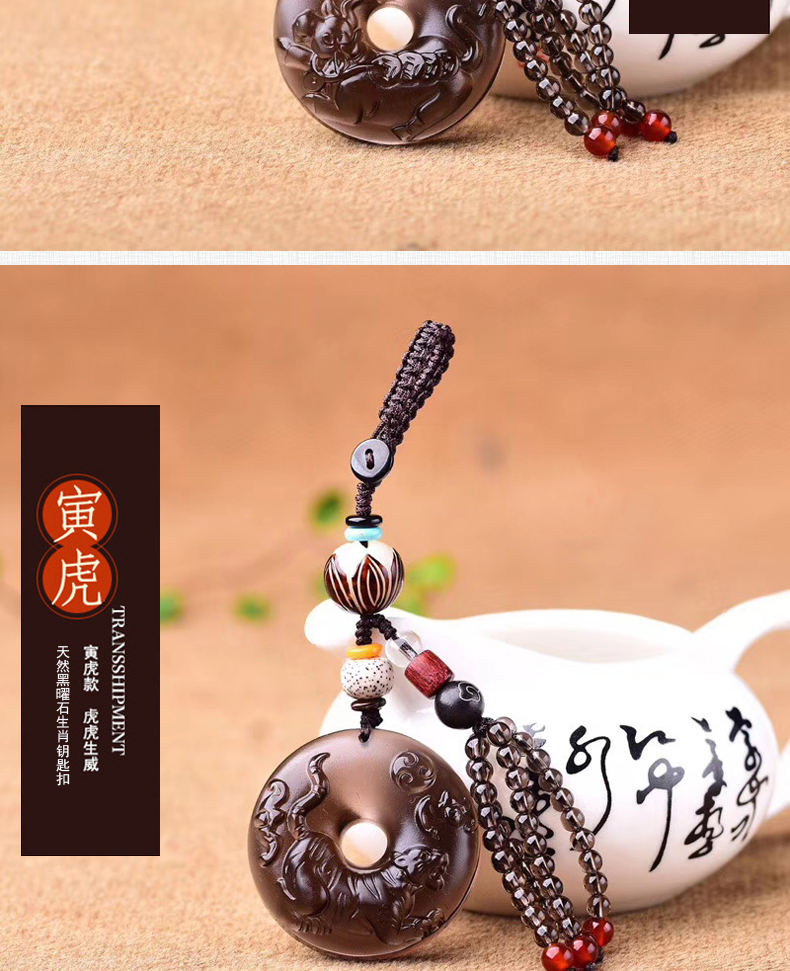 天然冰種黑曜石生肖羊平安扣鑰匙扣包掛 辟邪開運旺財保平安 6
