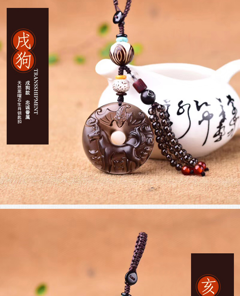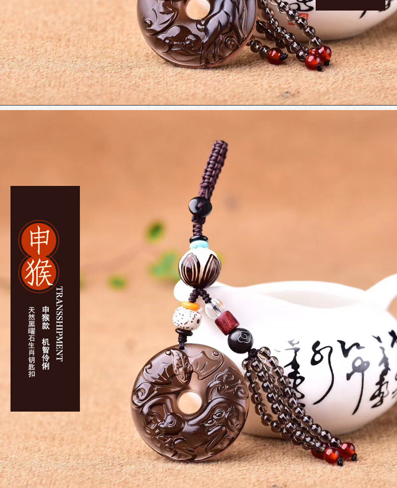 天然冰種黑曜石生肖羊平安扣鑰匙扣包掛 辟邪開運旺財保平安 3