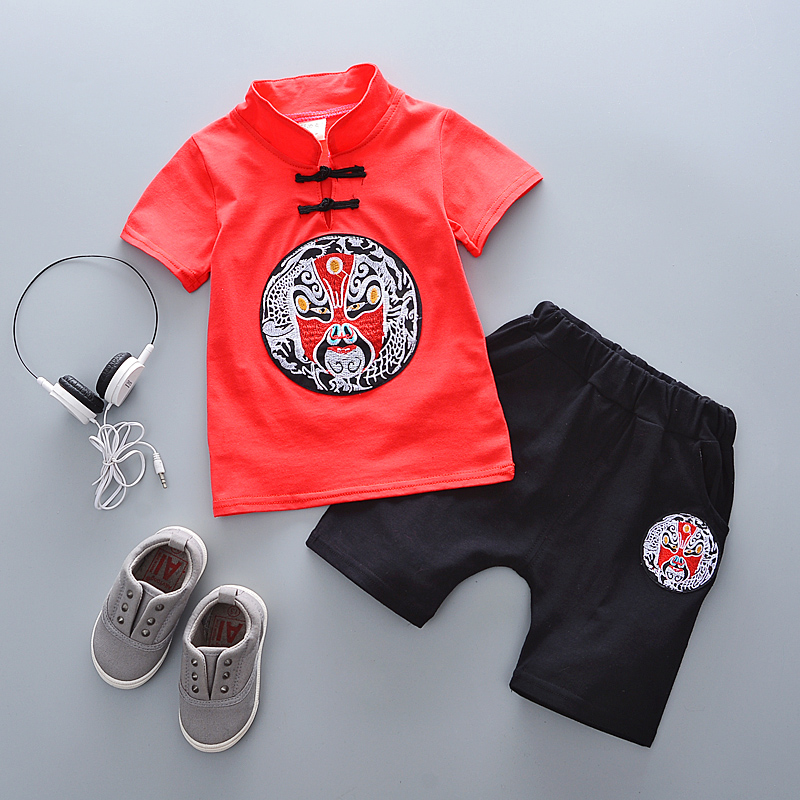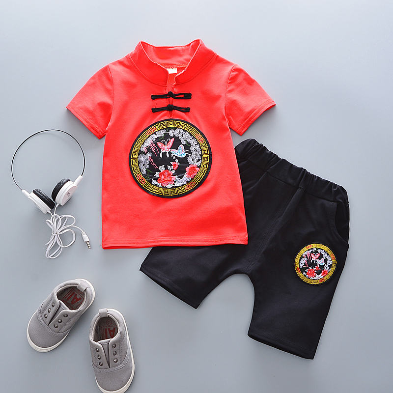童裝男童漢服中國風兒童唐裝小孩套裝嬰兒寶寶夏季短袖復古兩件套