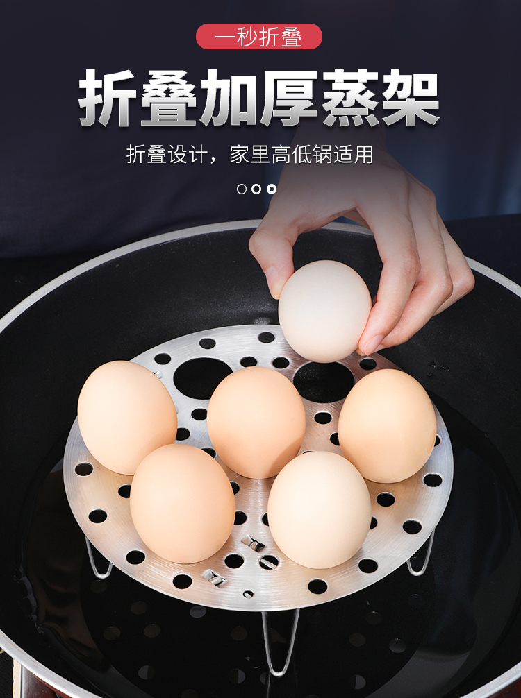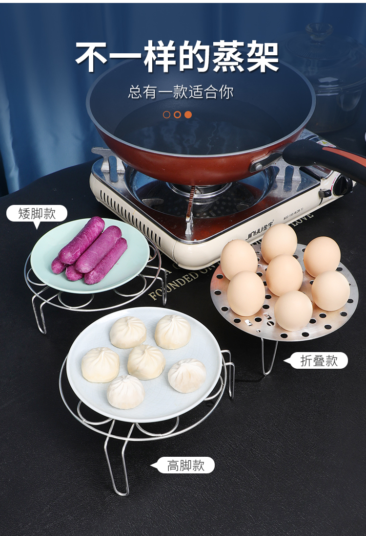 304不銹鋼家用隔水多功能鍋里的蒸架廚房蒸蛋包子折疊高腳架蒸籠
