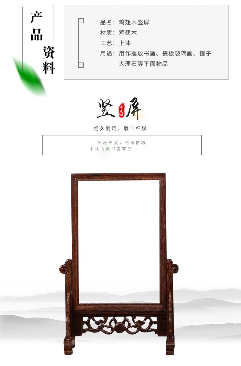 14寸雞翅木榫卯 實木古風臺屏擺臺 古典屏風擺件大理石字畫裱框