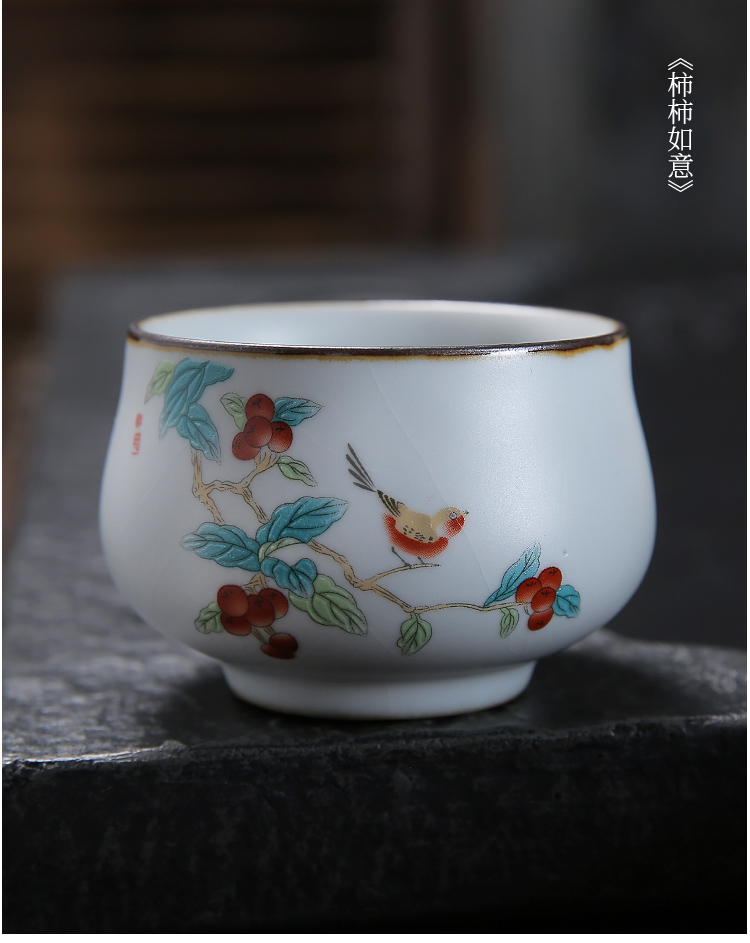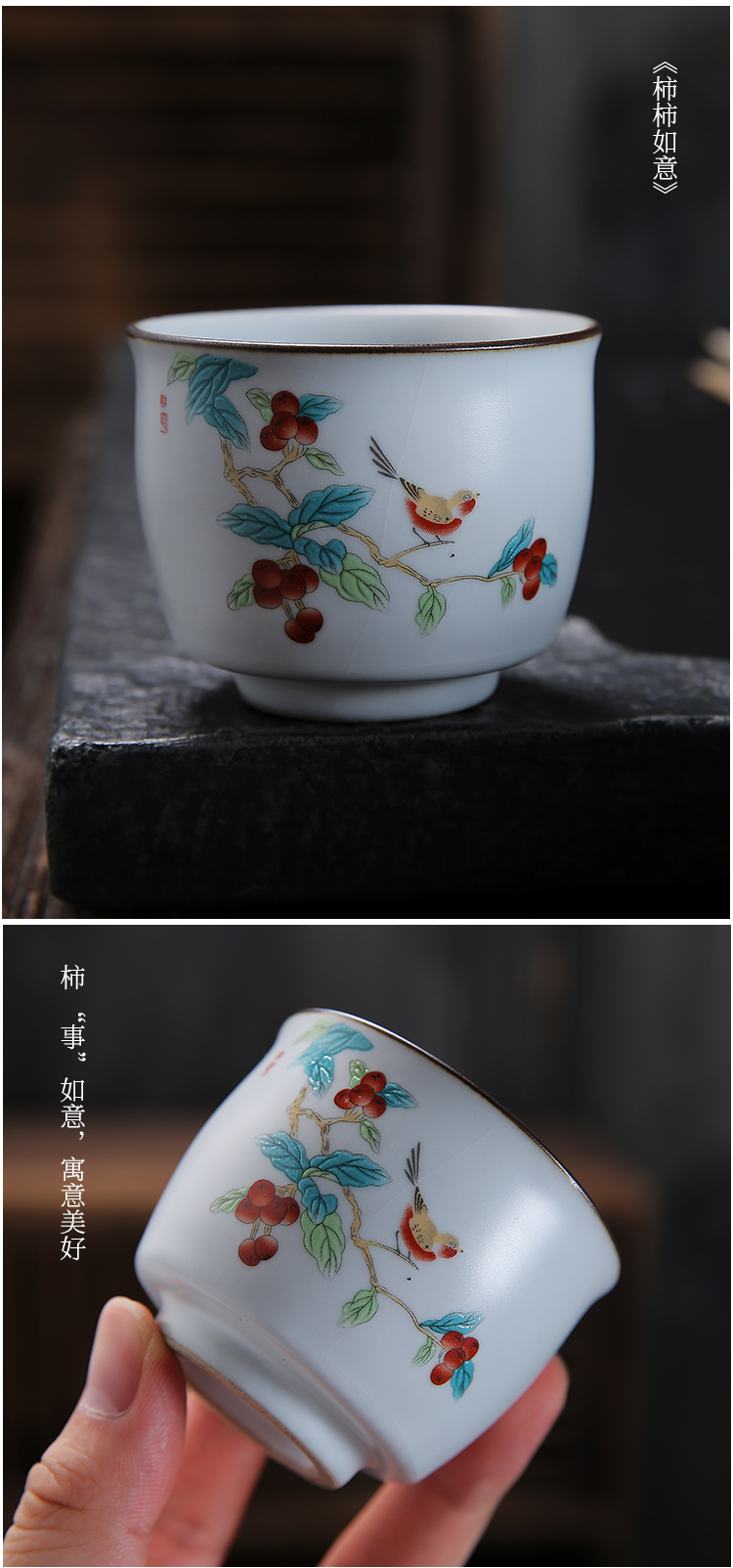 月白汝窯《禪意》主人杯-柿柿如意-開片可養金線