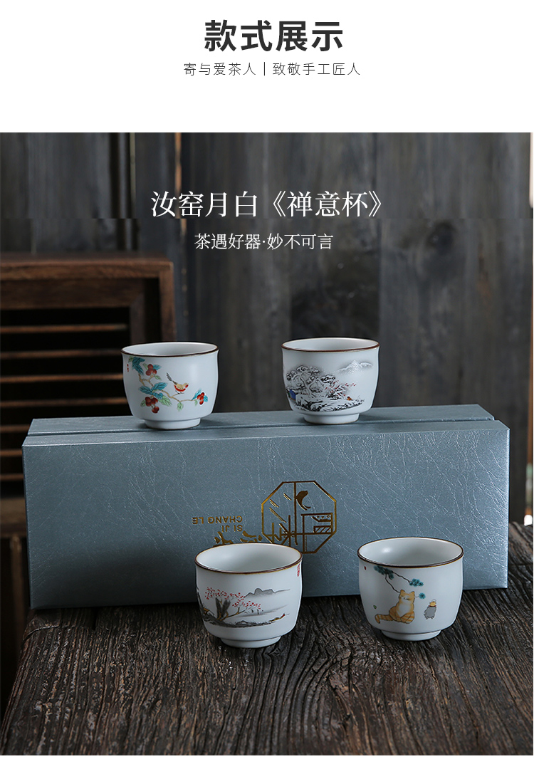 月白汝窯《禪意》主人杯-(4款各1)-開片可養金線