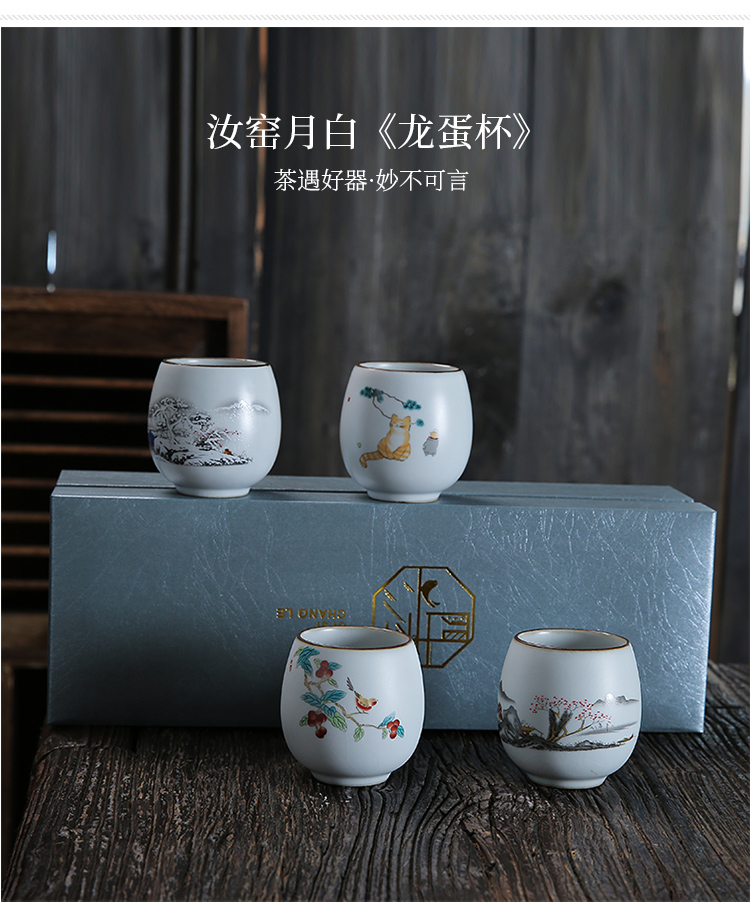 月白汝窯《龍蛋》主人杯-禮盒裝(4款各1)-開片可養金線