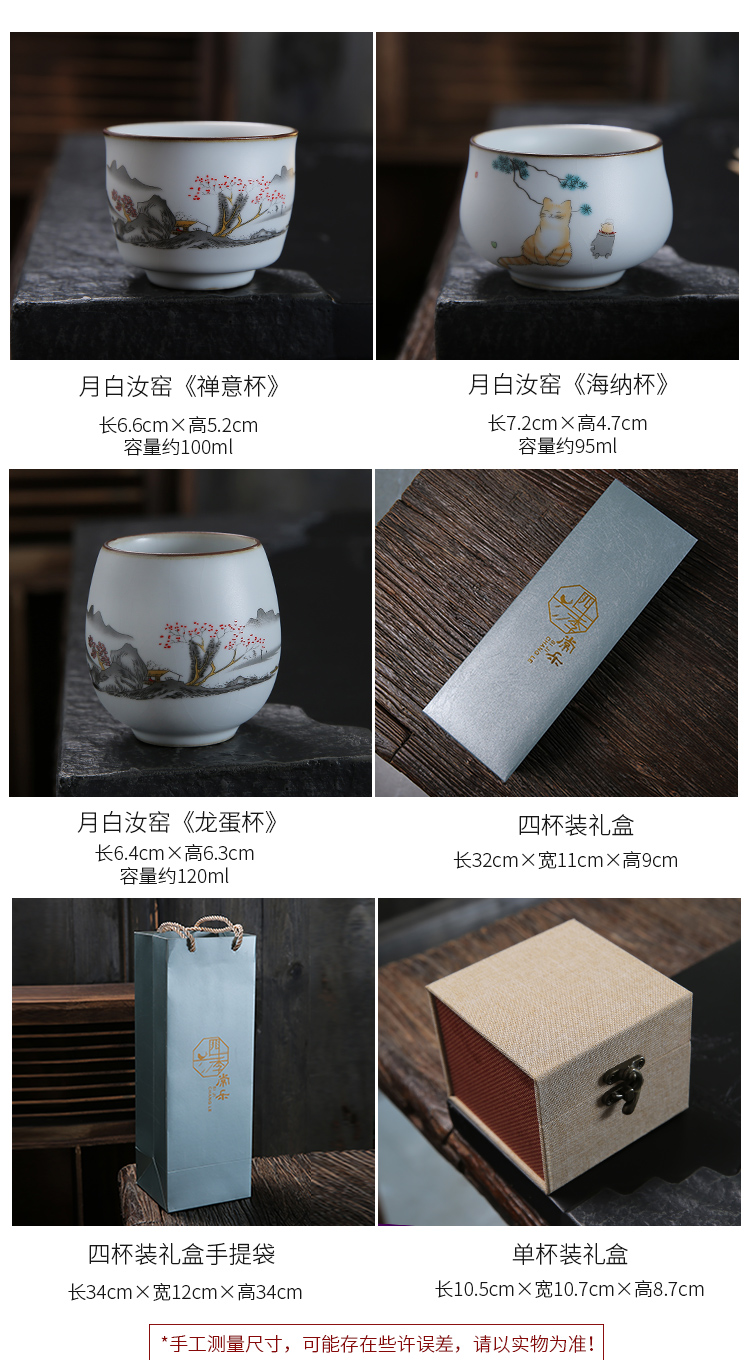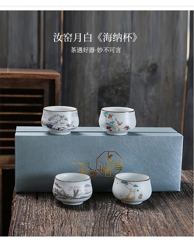 月白汝窯《海納》主人杯-4個禮盒裝(4款各1)-開片可養金線
