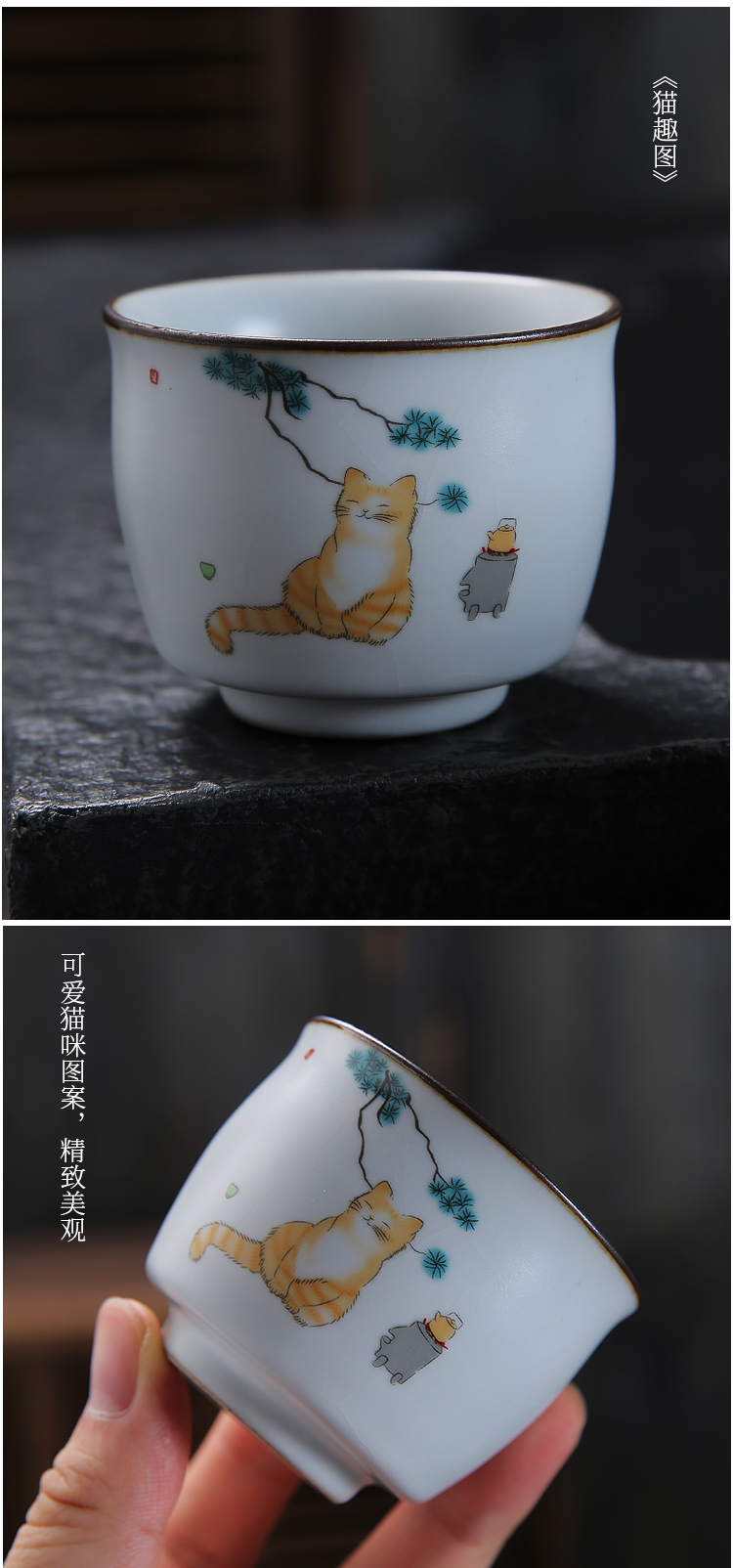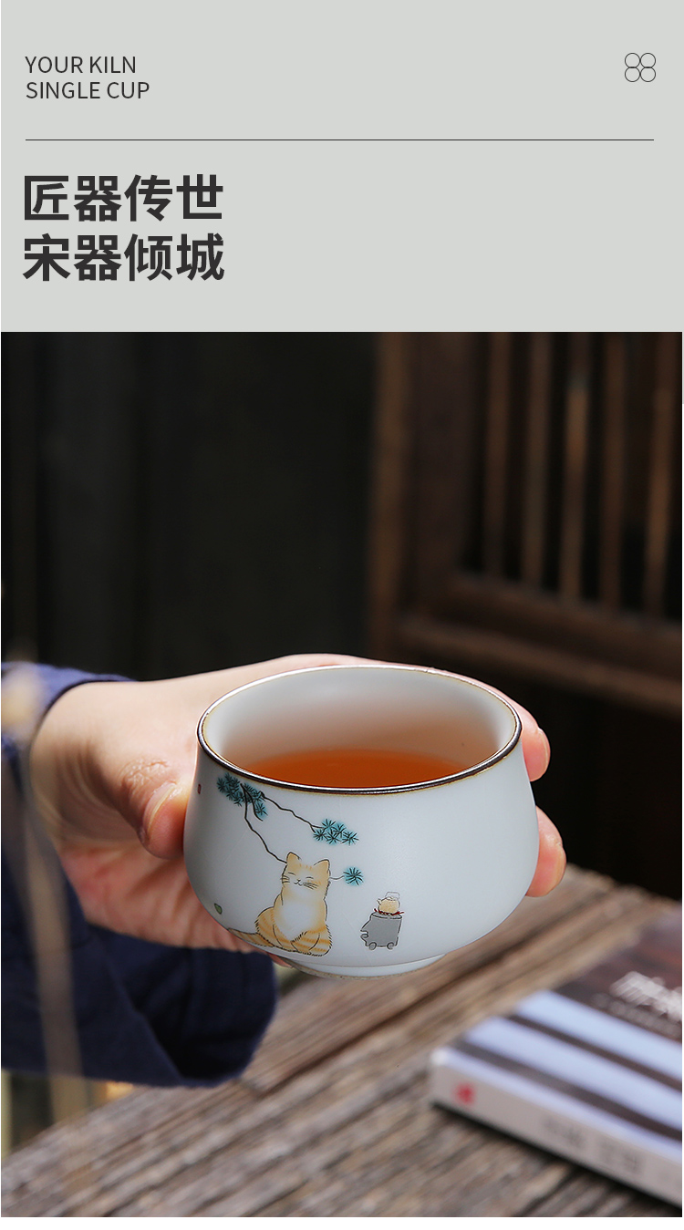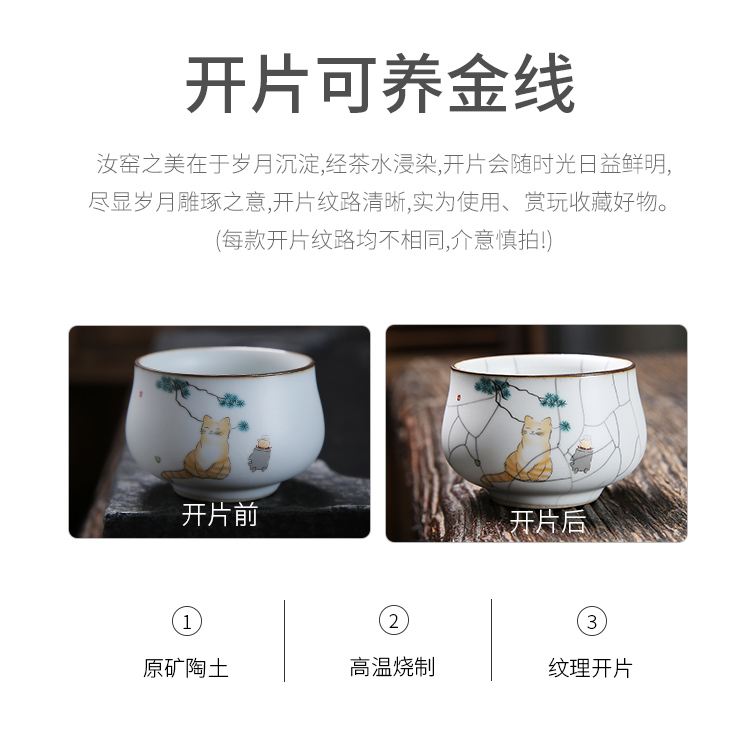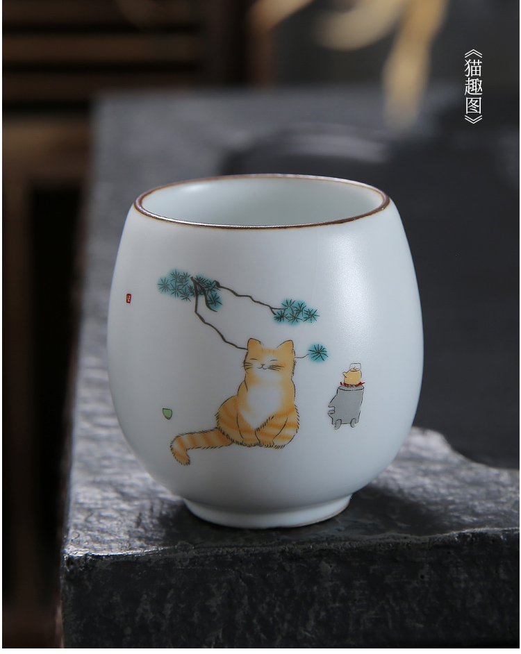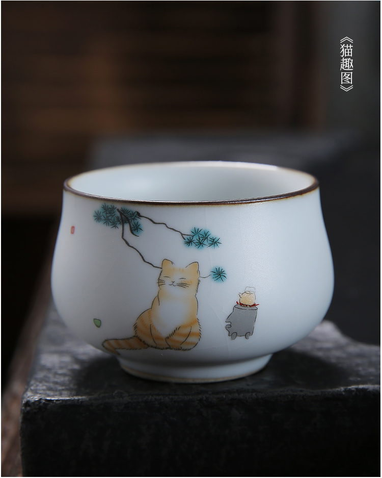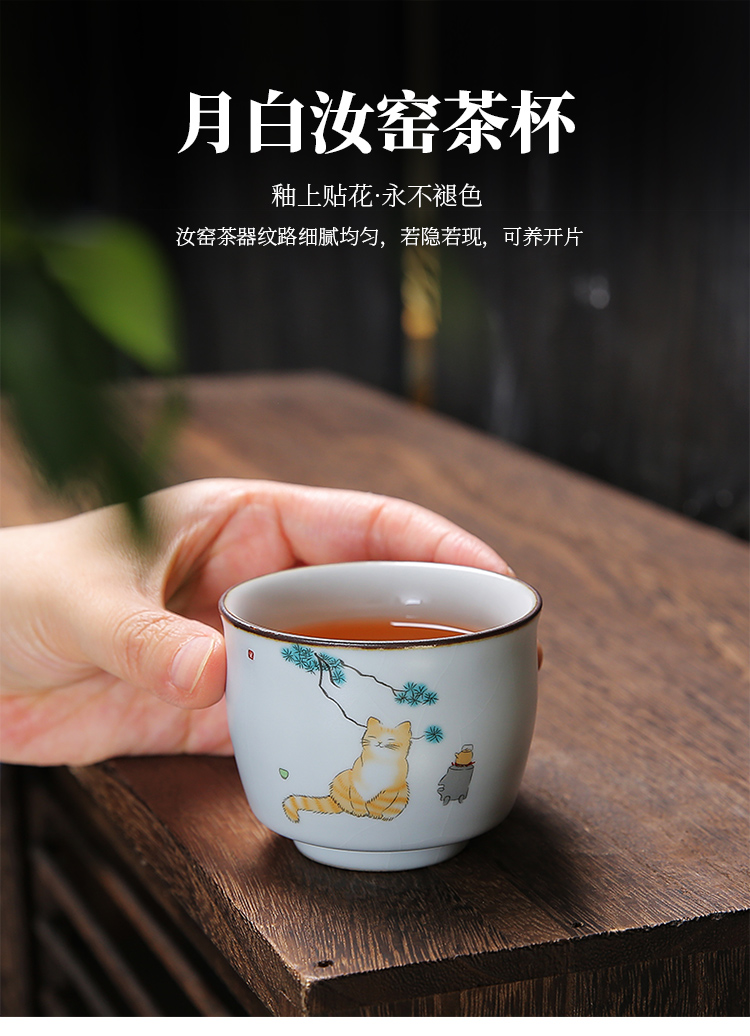 月白汝窯《海納》主人杯-貓趣圖-開片可養金線