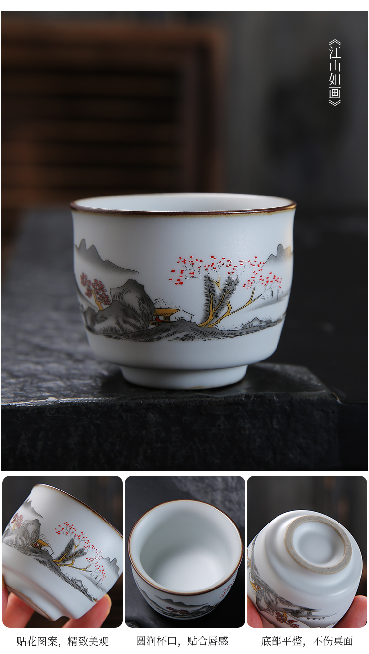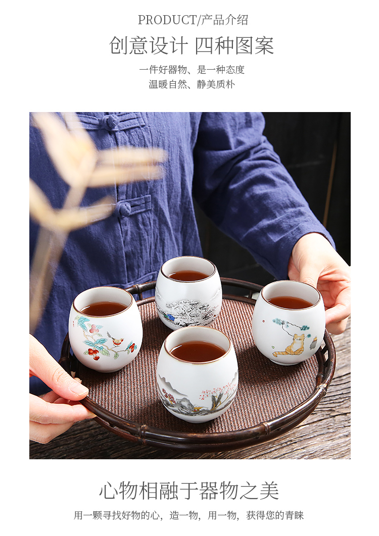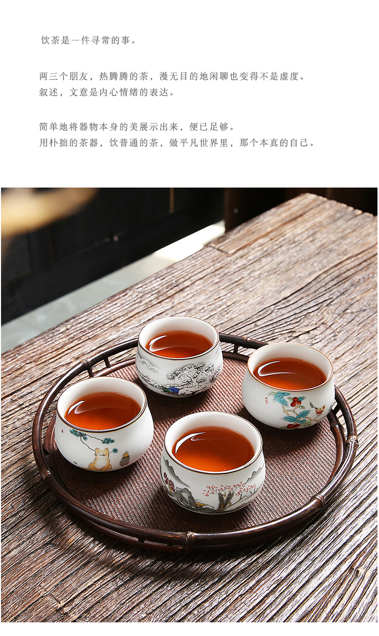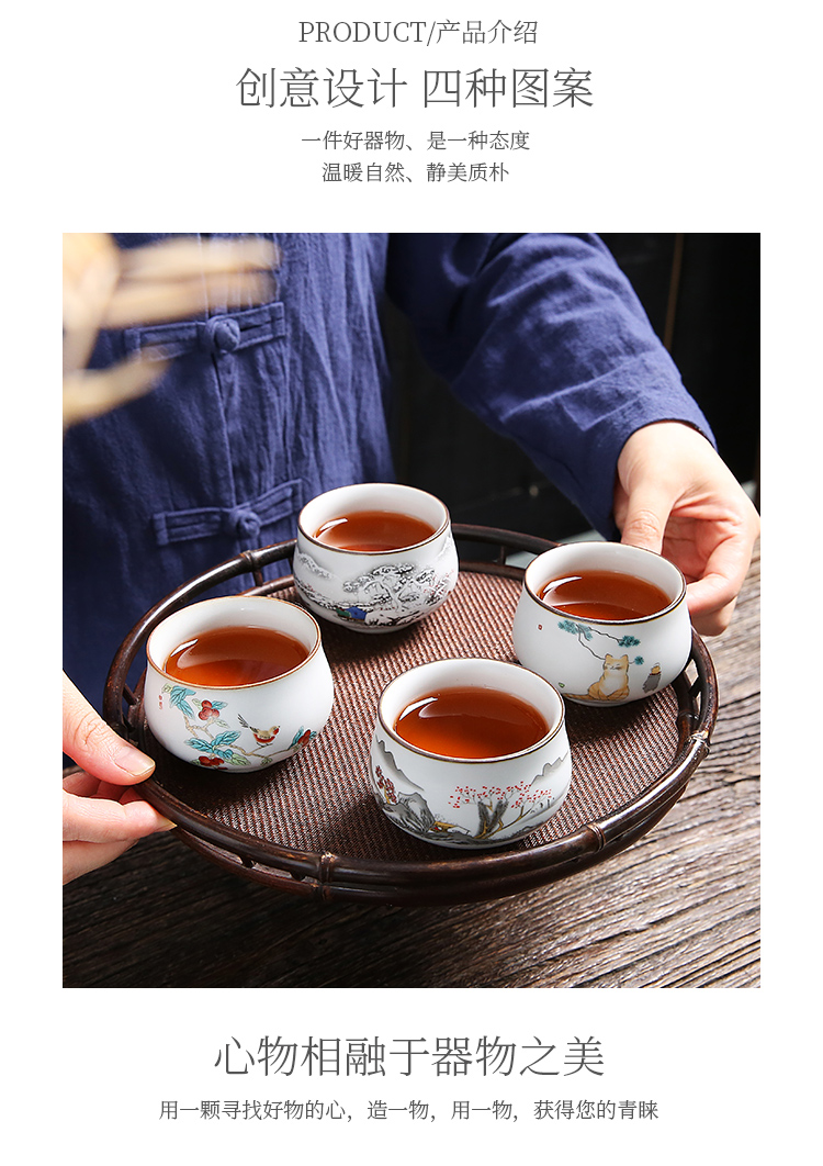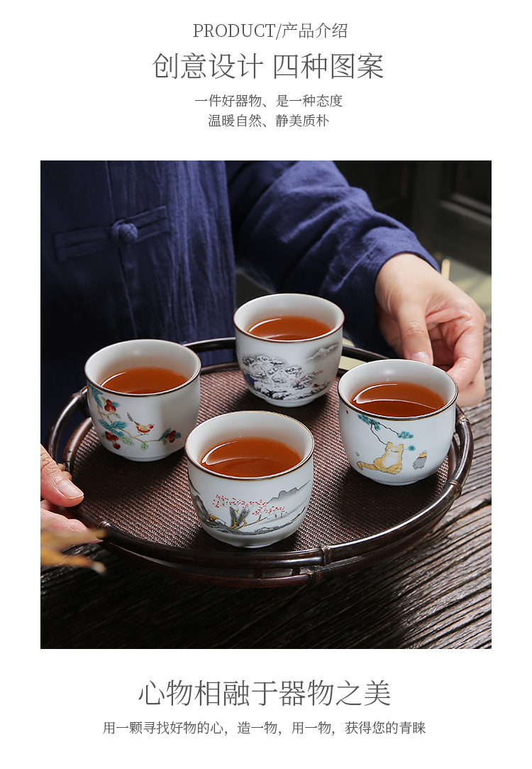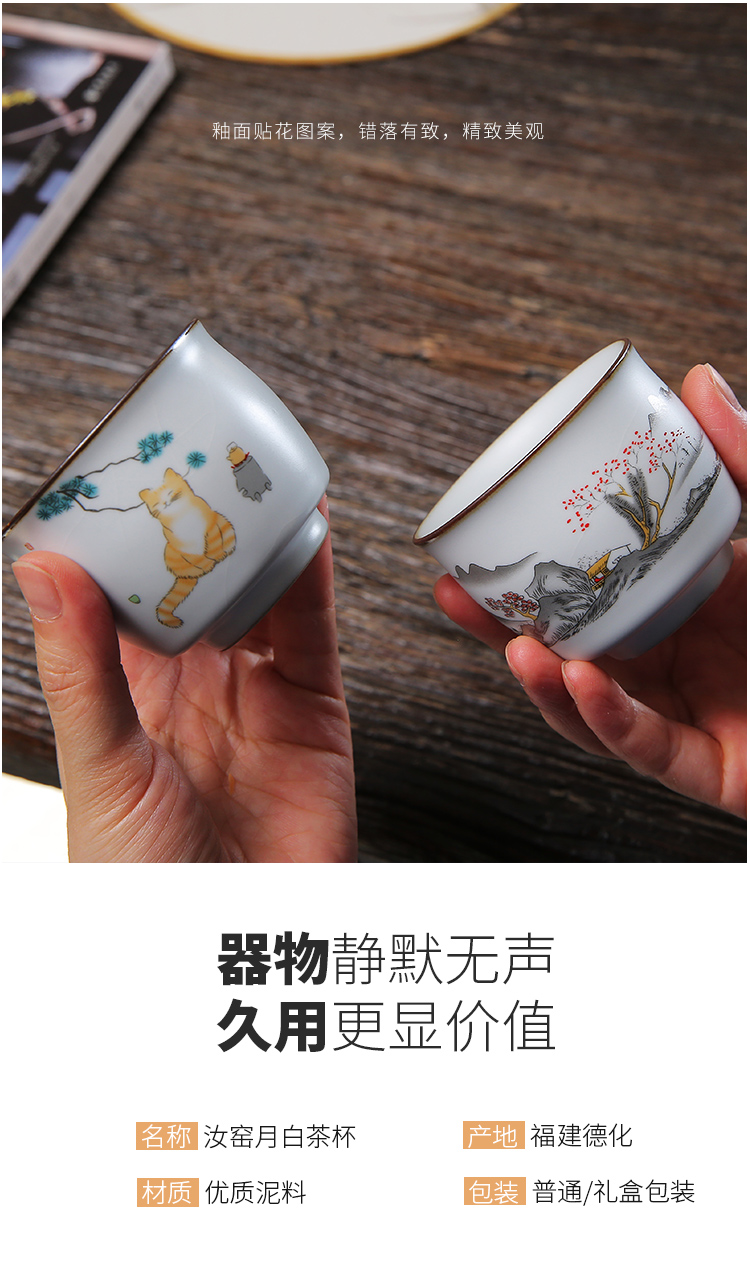 手工貼花貓趣圖功夫茶杯個人專用泡茶工具敬茶杯女士功夫茶具用品