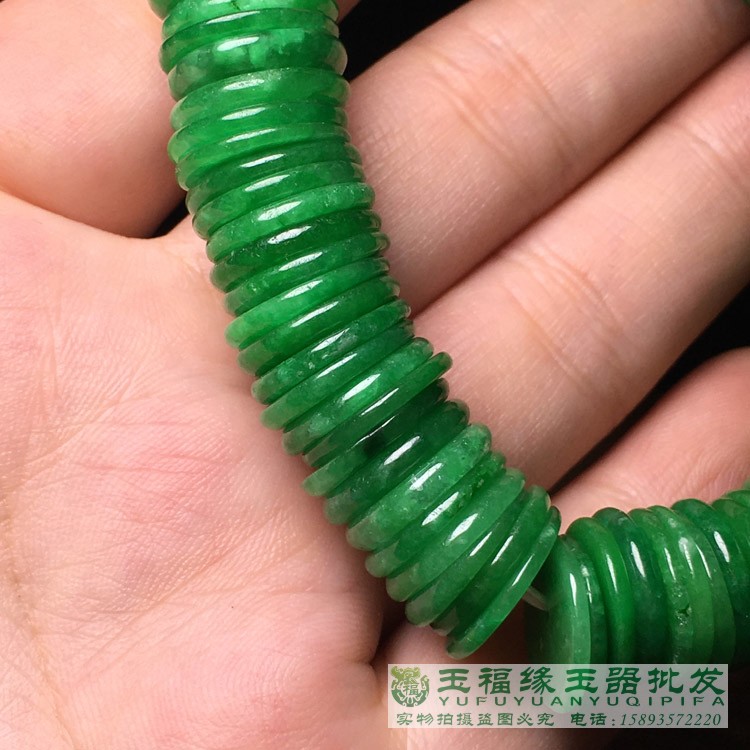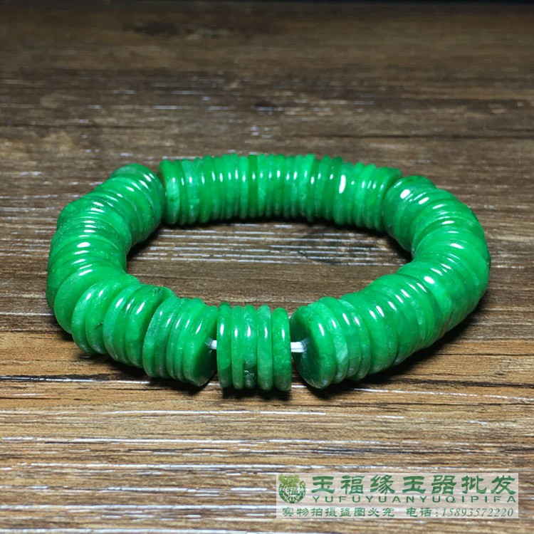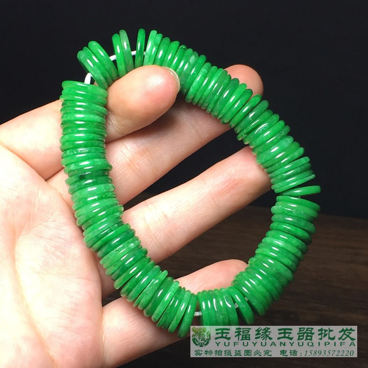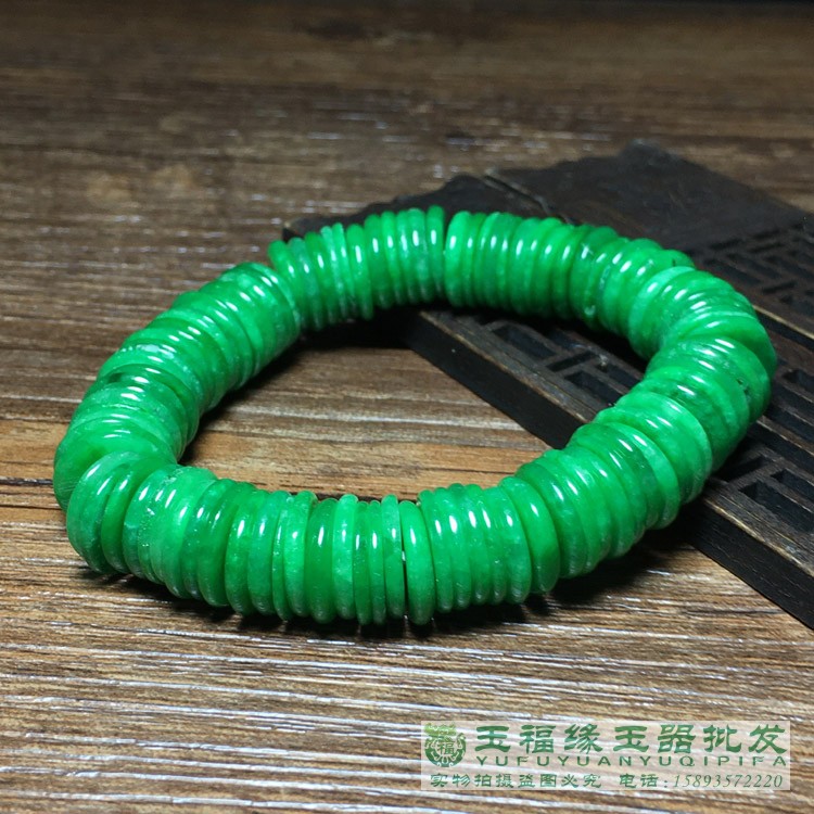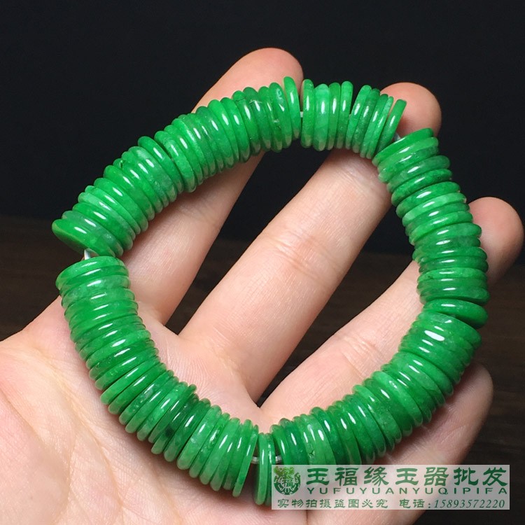 緬甸翡翠干青手鏈祖母綠老坑冰種陽綠平安扣手串男女款隔片手串
