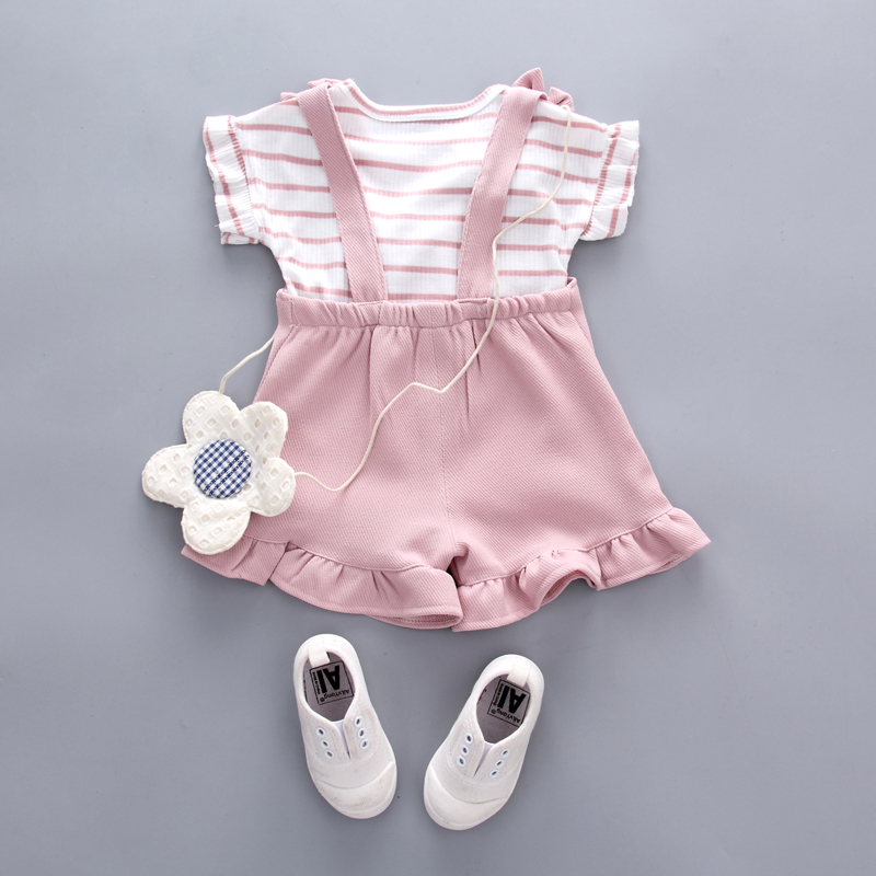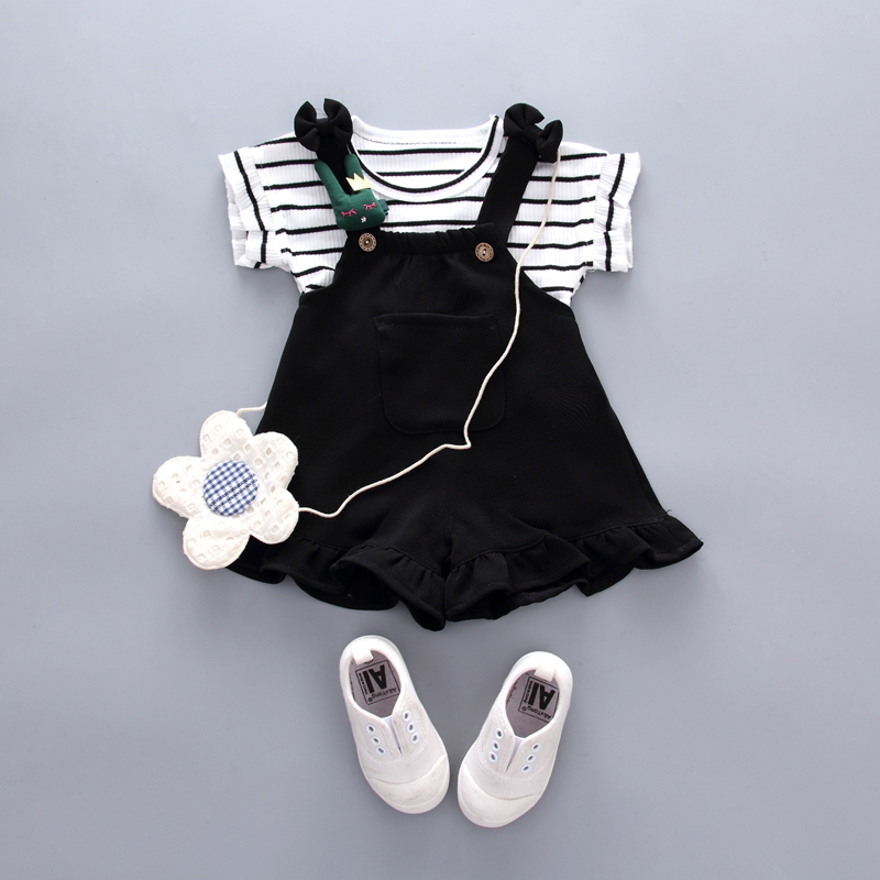 女童夏裝套裝2018新款童裝洋氣韓版短袖T恤公主背帶褲兩件套1-3歲