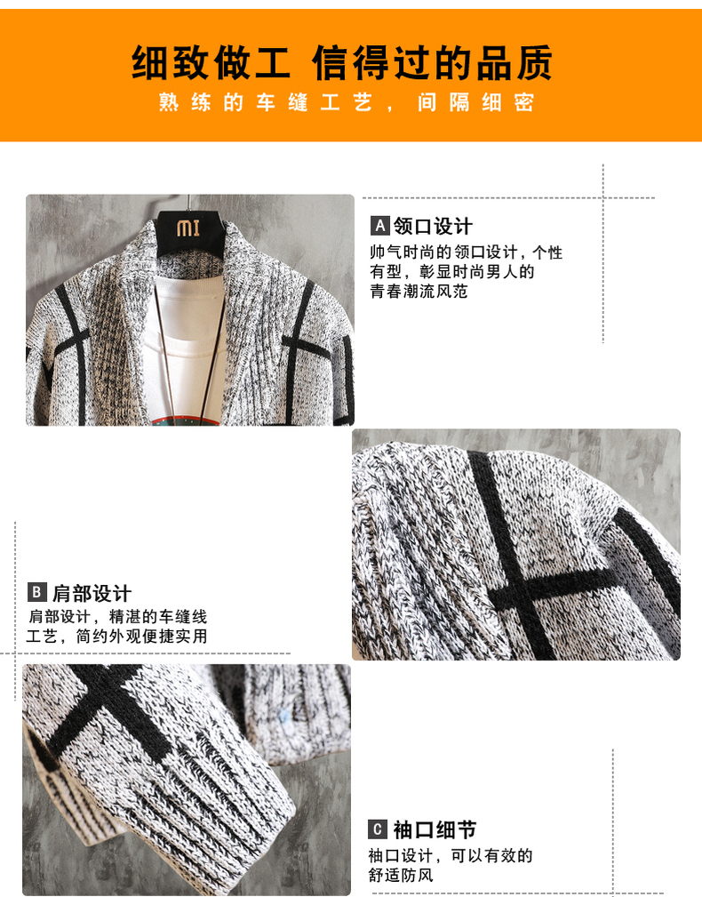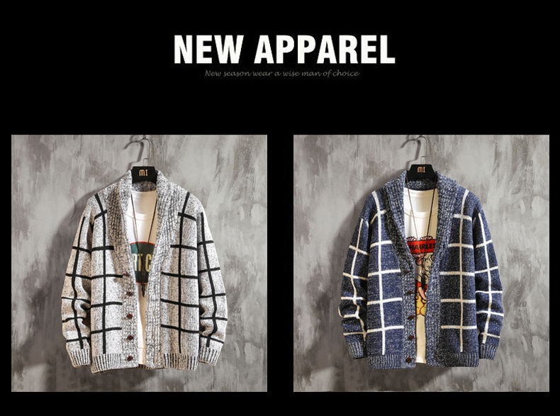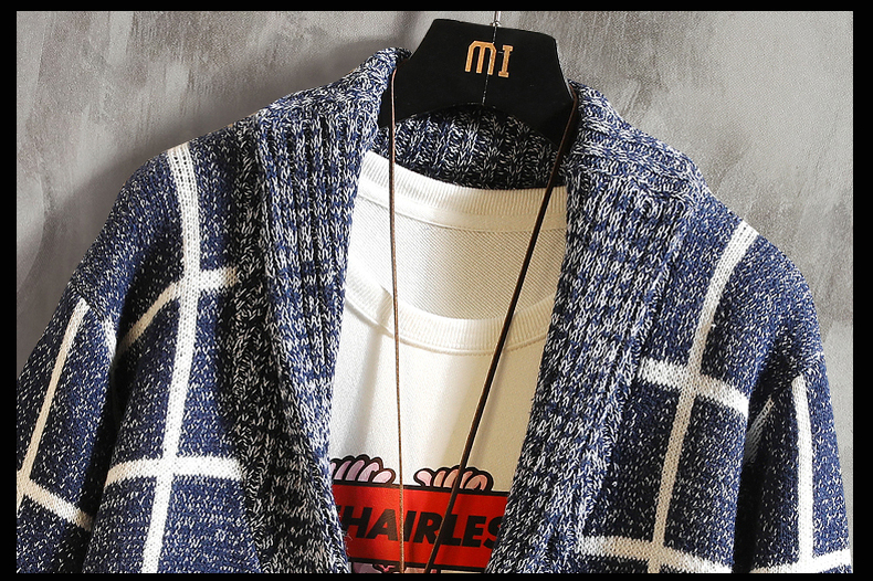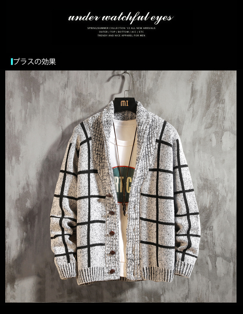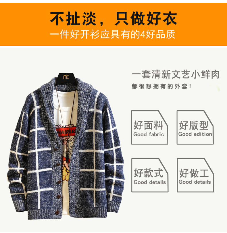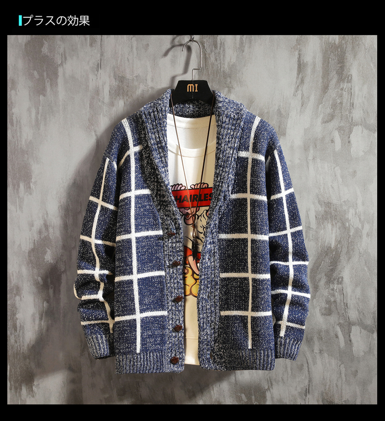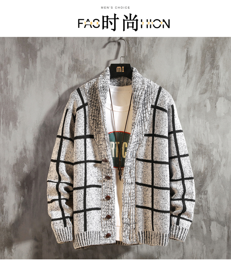 針織衫男開衫外套潮流韓版修身格子毛衣外穿秋冬季慵懶風線衣厚款