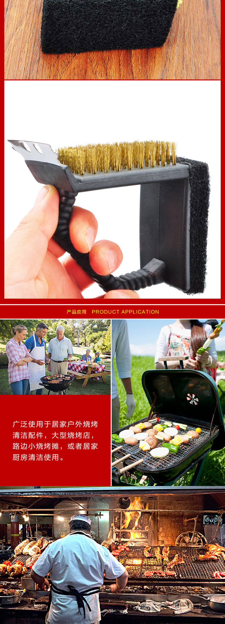 三合一多功能燒烤清潔刷鋼絲刷燒烤爐實用工具戶外燒烤油刷燒烤刷