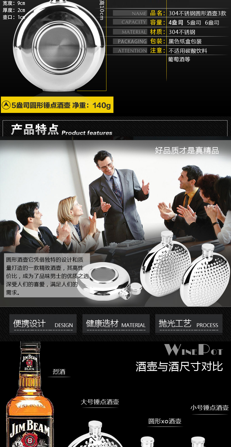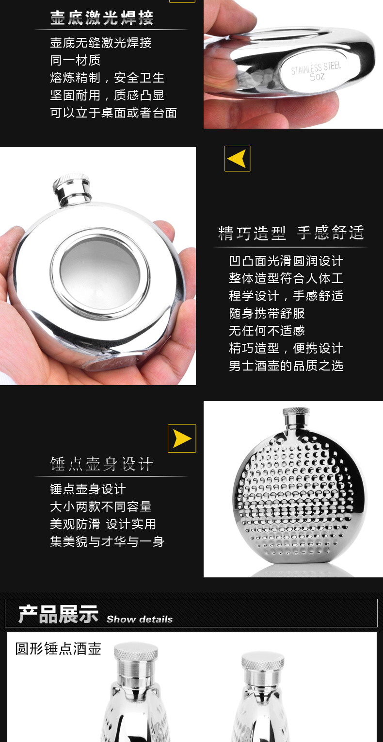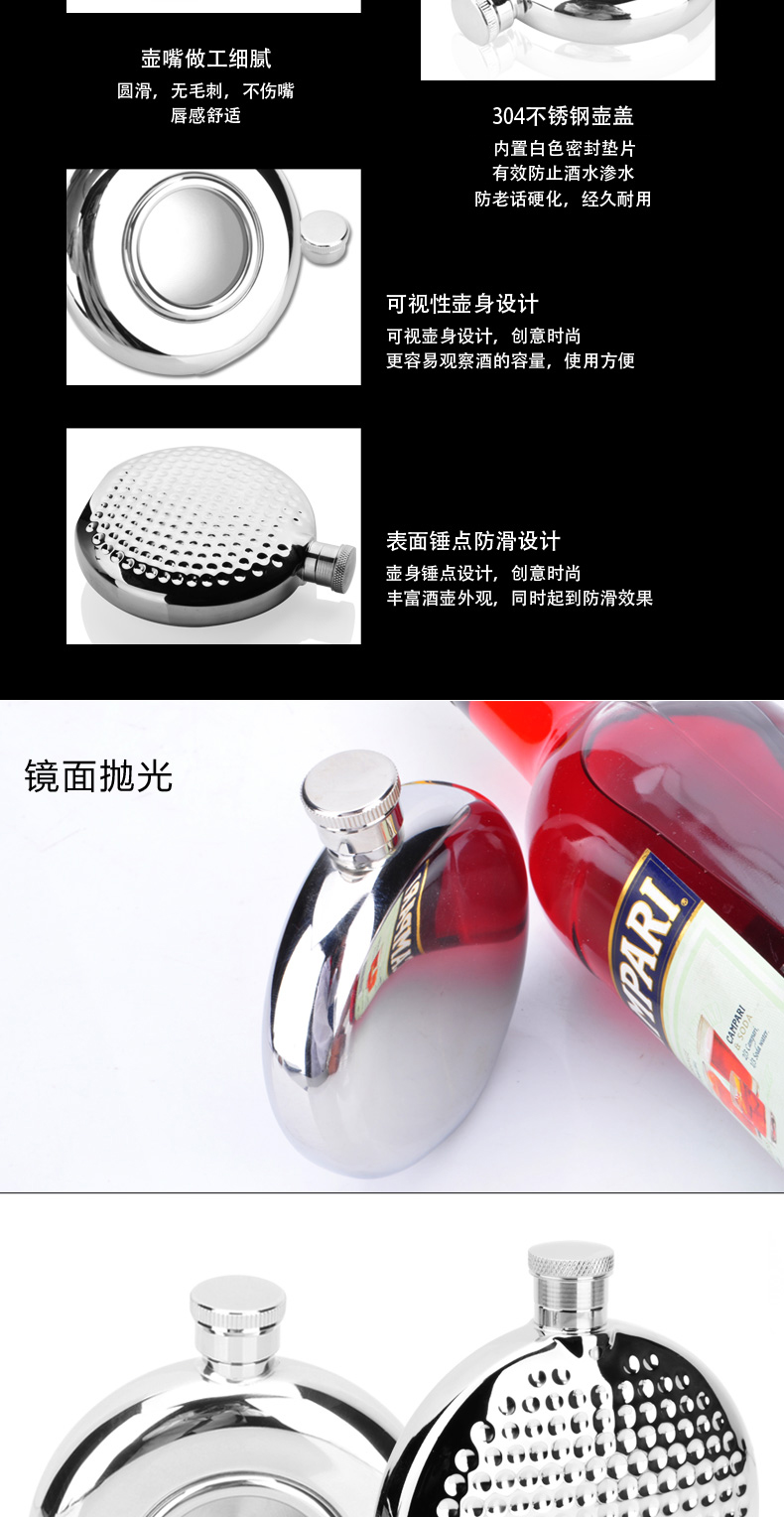 304不銹鋼酒壺戶外隨身便攜水壺圓形金屬酒瓶酒具創意禮品