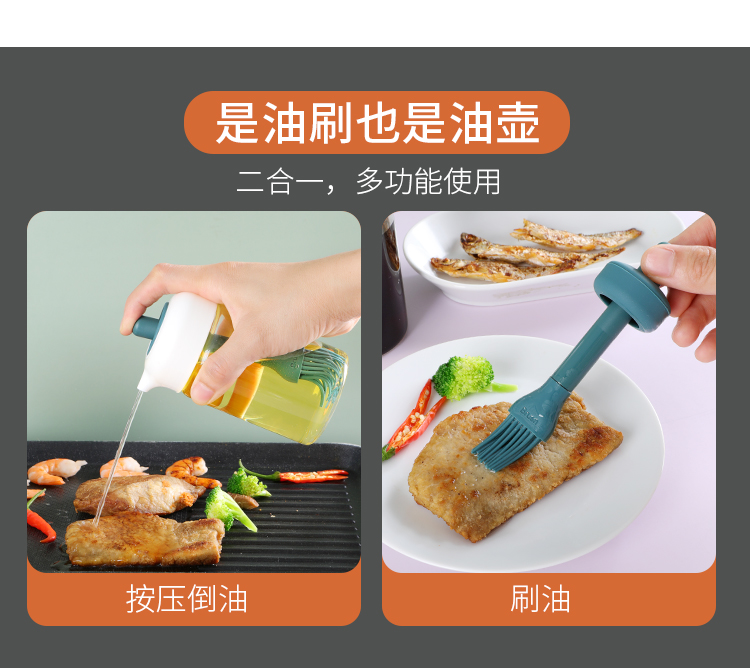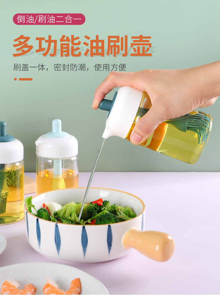 家用油壺刷硅膠油刷帶瓶一體刷油刷子耐高溫廚房烙餅煎餅烤肉工具