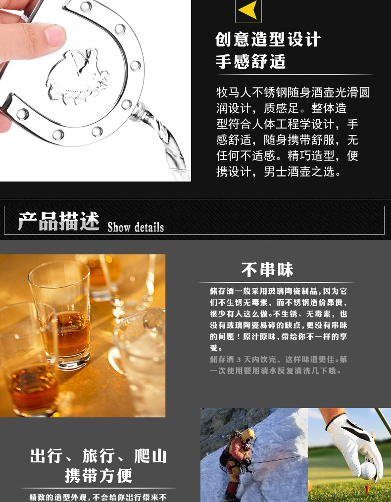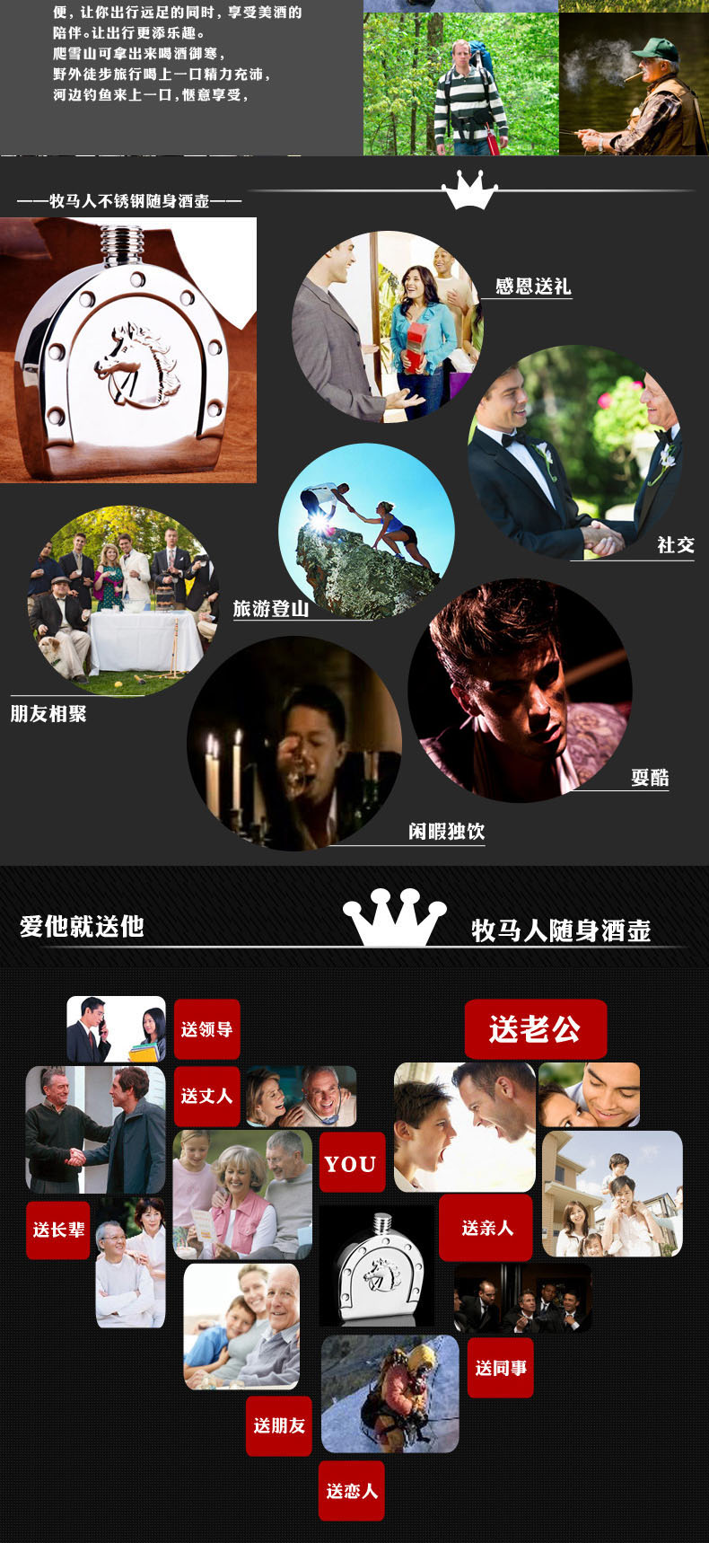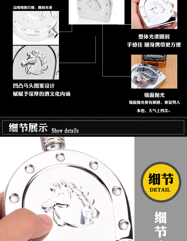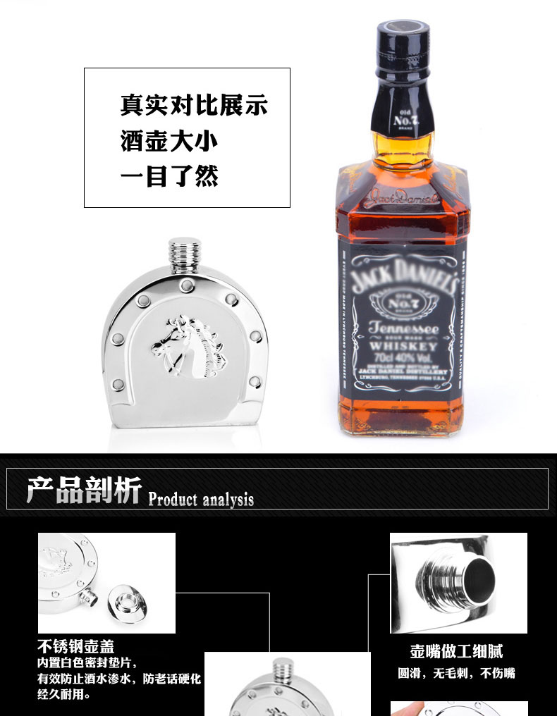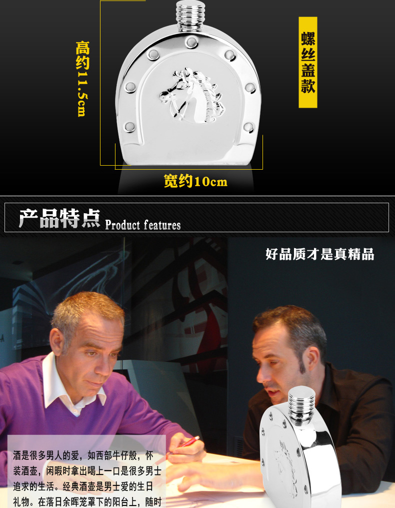 創意個性精鋼6盎司牧馬人酒壺不銹鋼酒壺隨身便攜酒壺酒瓶戶外