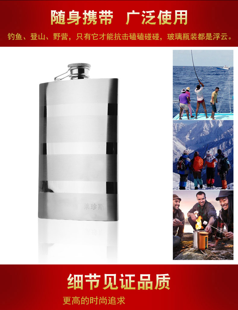 304不銹鋼酒壺戶外隨身便攜7盎司斑馬線水壺金屬酒瓶水壺酒具禮品