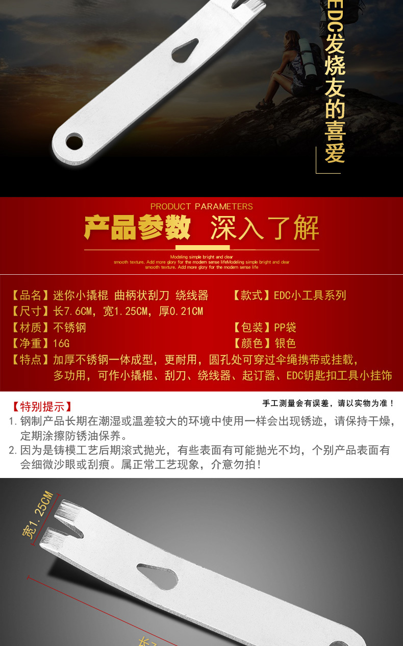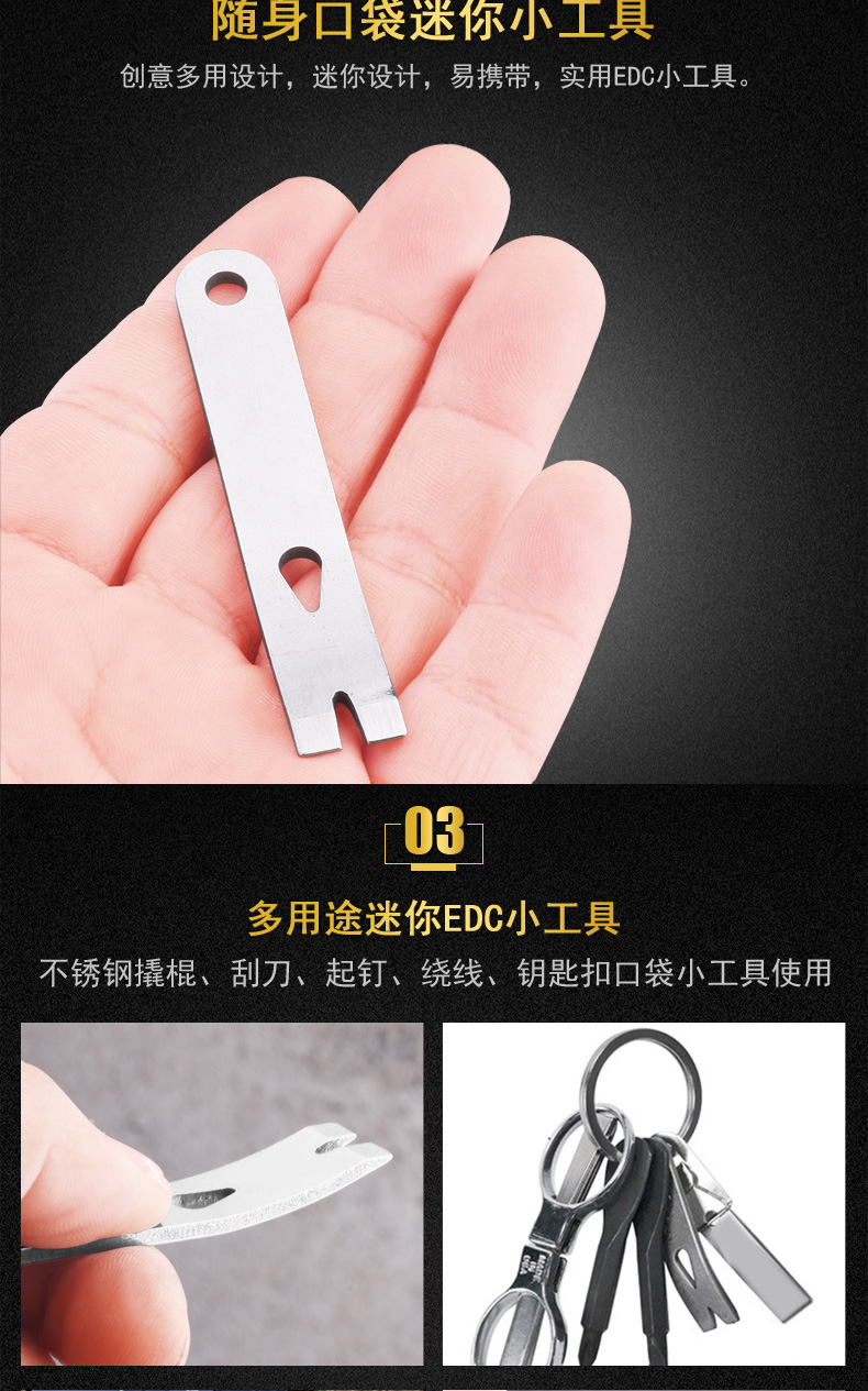 迷你不銹鋼撬棍起釘器繞線器曲柄刮刀起釘撬棒鑰匙扣戶外EDC工具