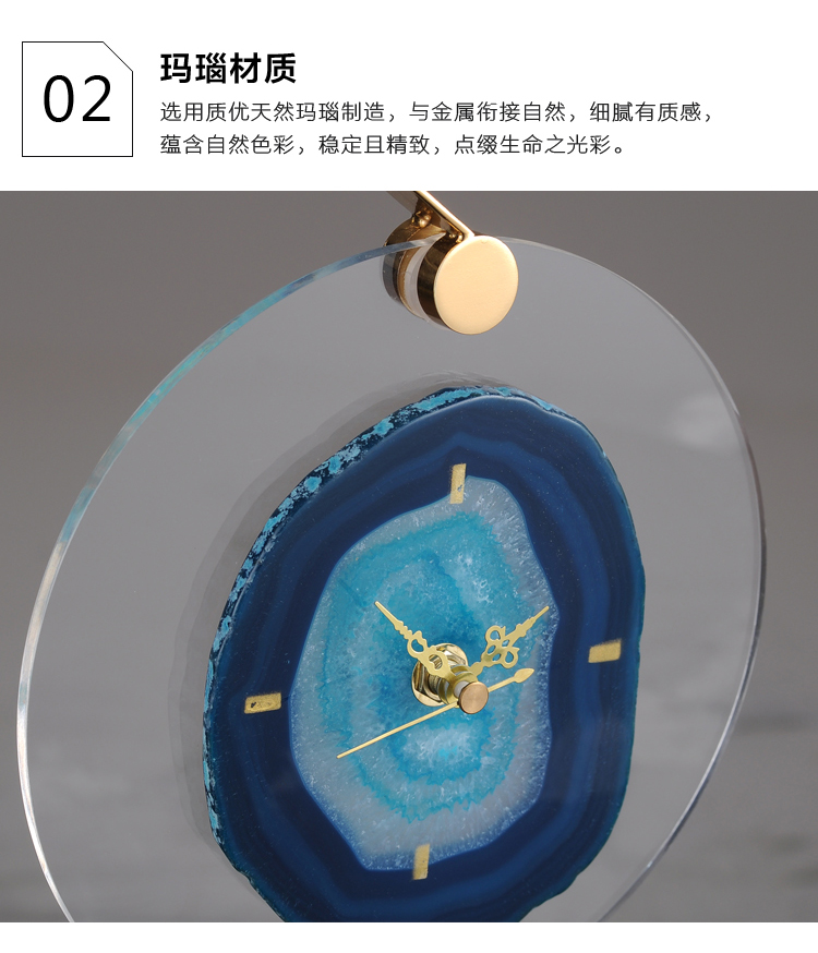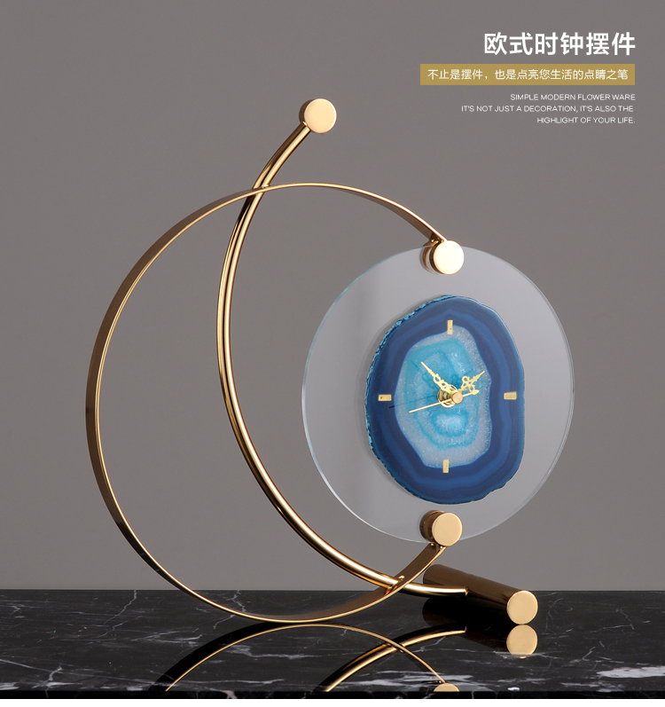 樣板房酒店會所軟裝擺件新古典歐式家居金屬瑪瑙時鐘客廳書房飾品 2