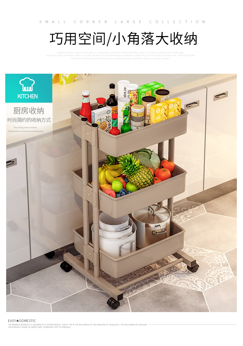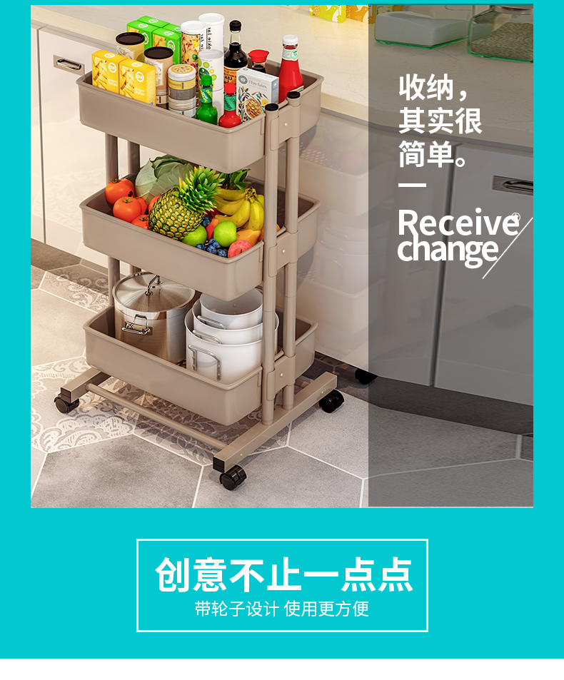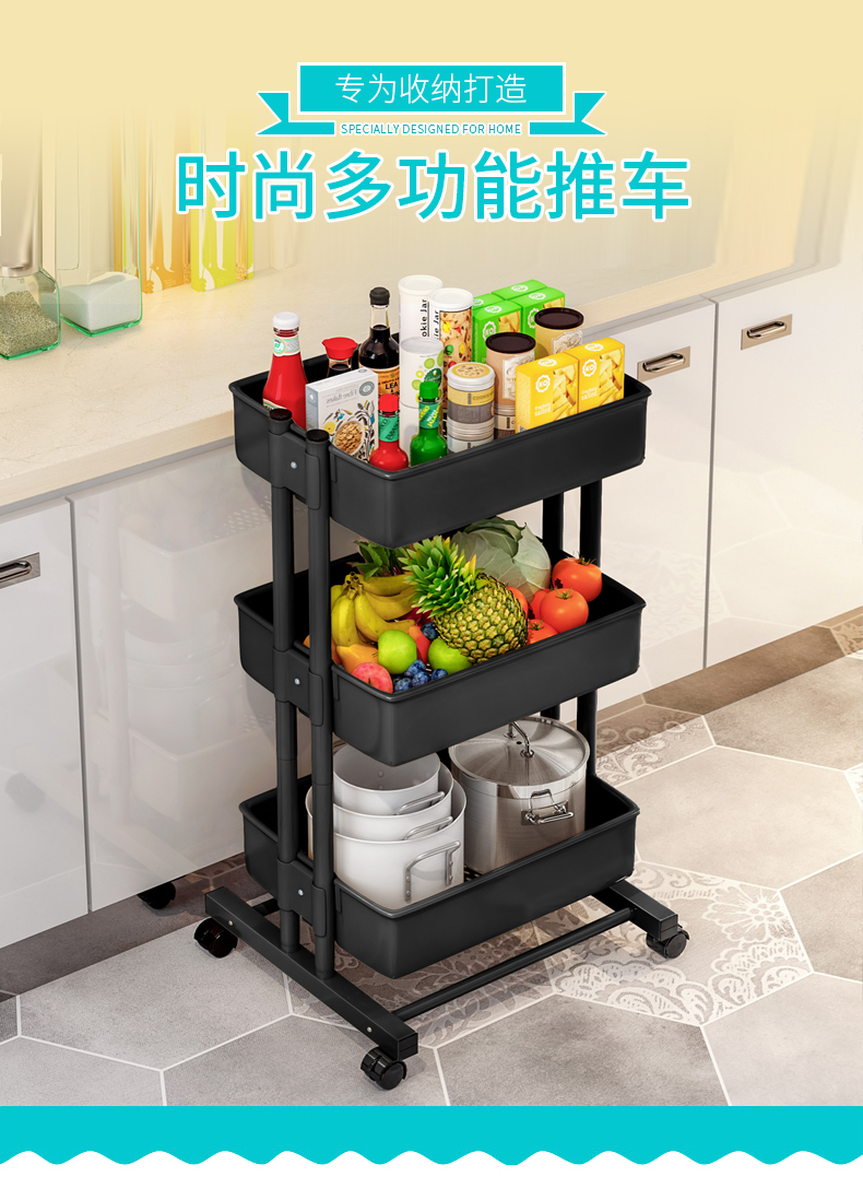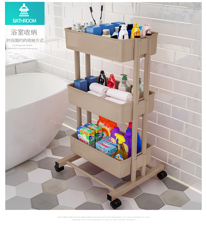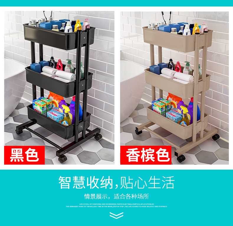 置物架落地家用廚房小推車多層架可移動美容美甲客廳帶輪收納架子 3