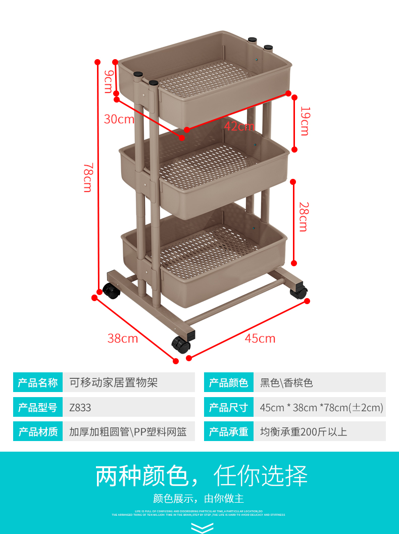 置物架落地家用廚房小推車多層架可移動美容美甲客廳帶輪收納架子 7