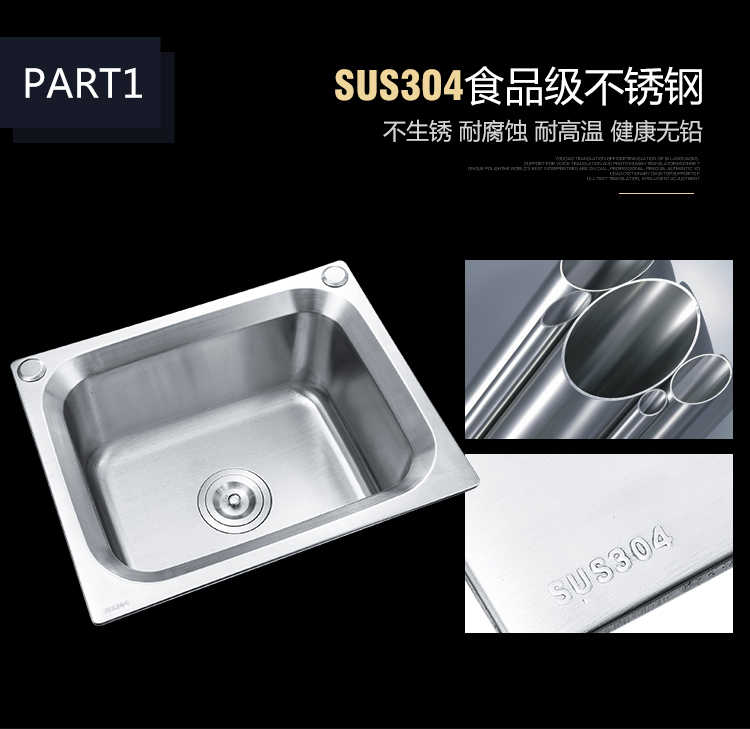 304不銹鋼水槽單盆 洗菜盆/池單槽廚房水槽加厚大單槽加厚洗碗池 7