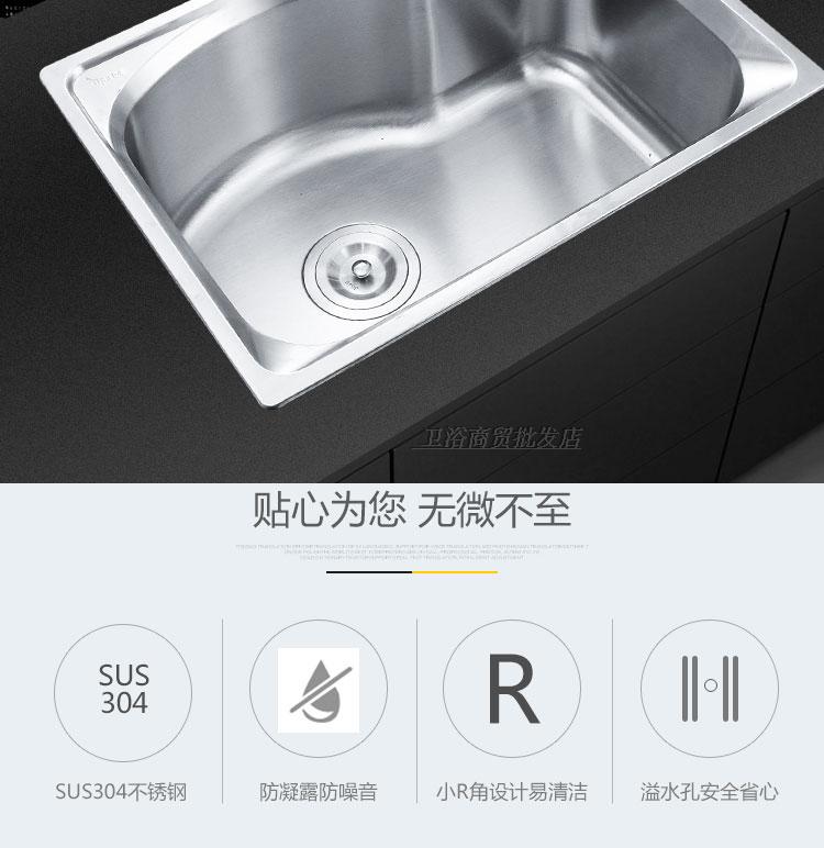 304不銹鋼水槽單盆 洗菜盆/池單槽廚房水槽加厚大單槽加厚洗碗池 6