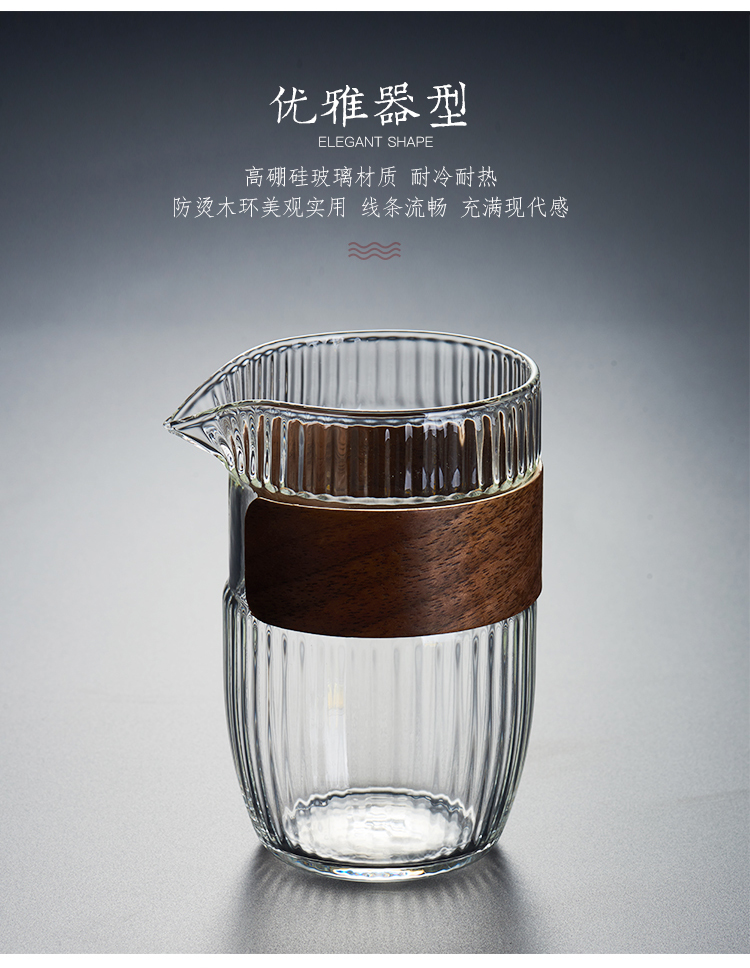 玻璃條紋公道杯茶濾一體防燙公杯功夫茶具日式大號分茶器具大容量 6