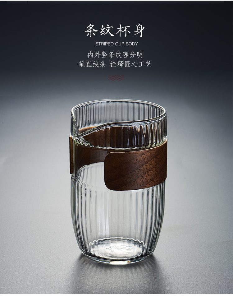 5. 玻璃條紋公道杯茶濾一體防燙公杯功夫茶具日式大號分茶器具大容量