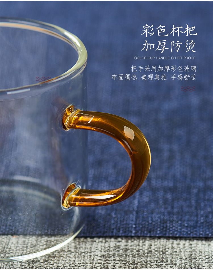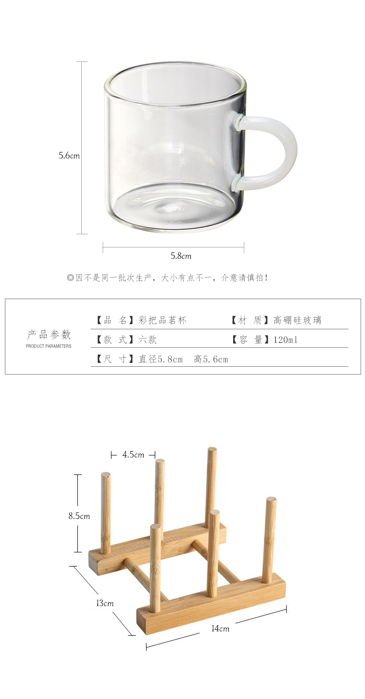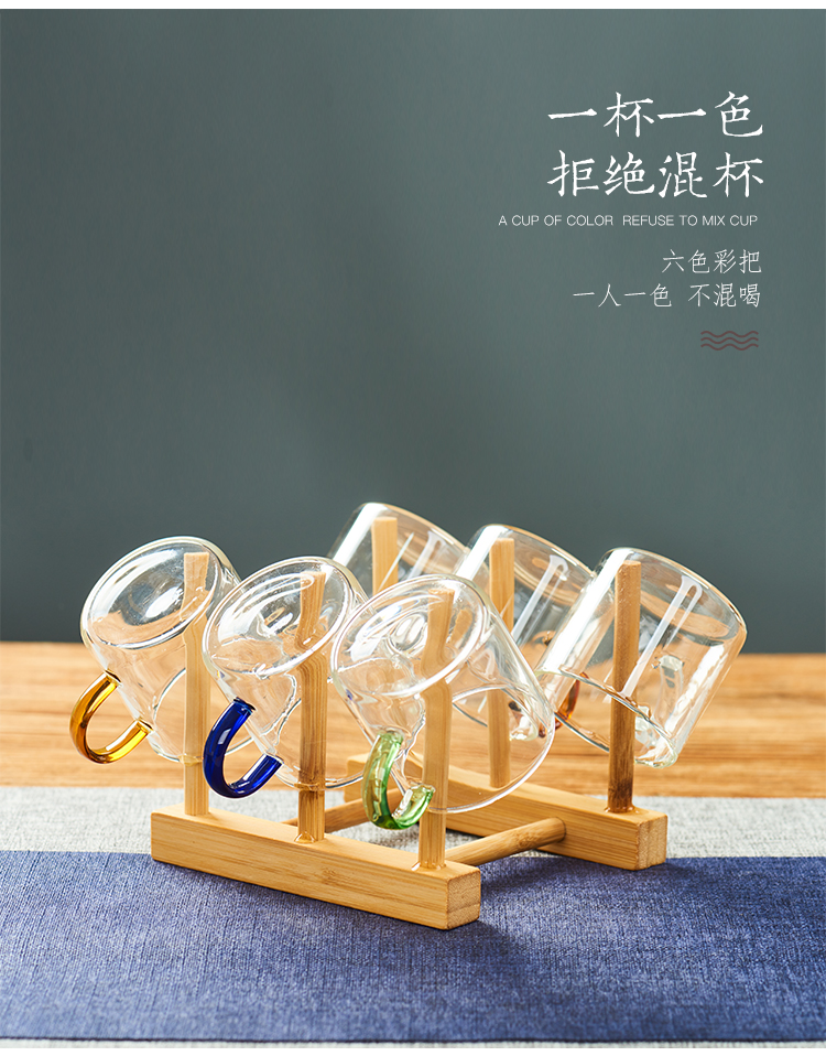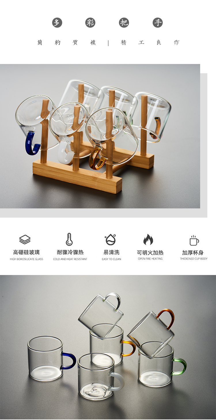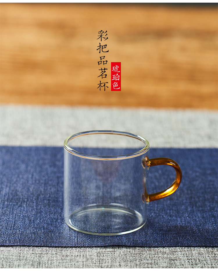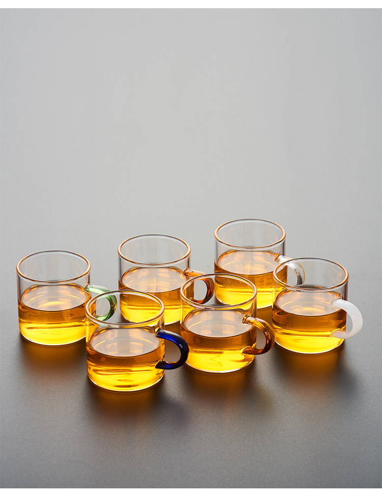 玻璃小茶杯耐熱家用功夫茶具套裝透明單個主人杯子加厚帶把6只裝 3
