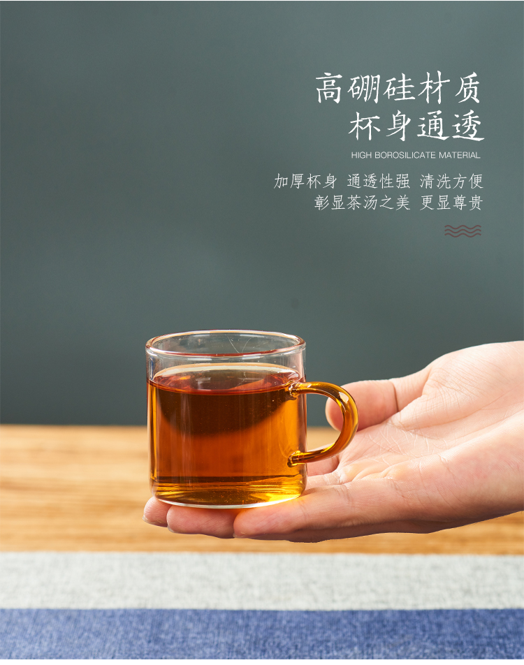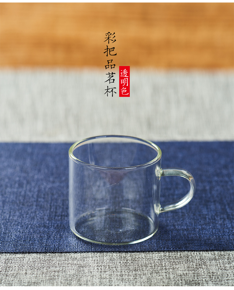 5. 玻璃小茶杯耐熱家用功夫茶具套裝透明單個主人杯子加厚帶把6只裝