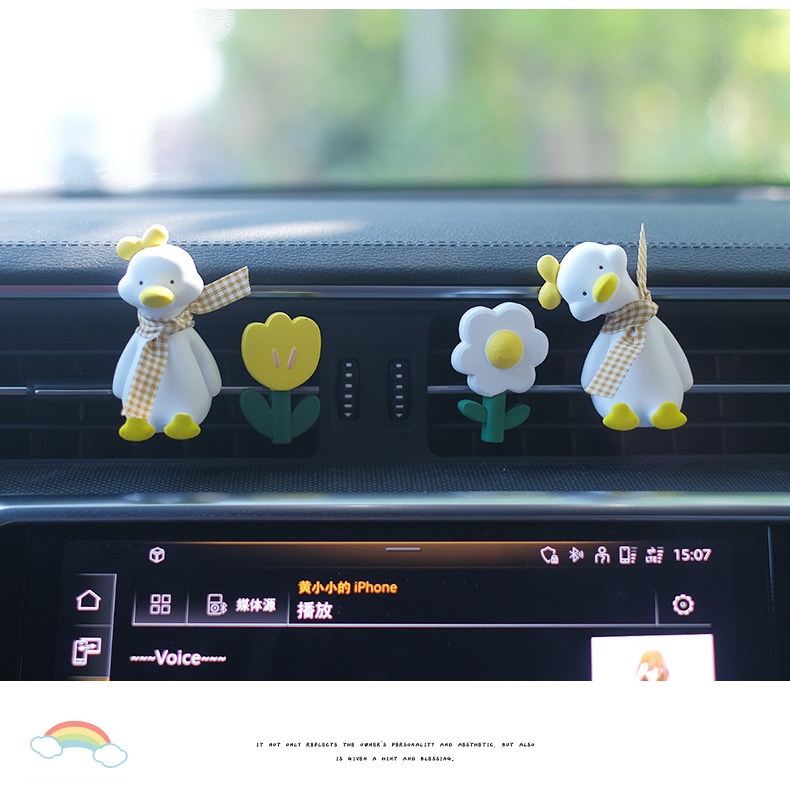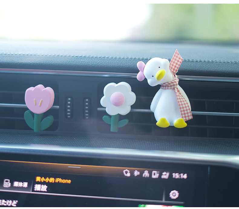 5. 汽車空調出風口香水夾網紅鴨持久淡香可愛擴香石香薰擺件車內裝飾
