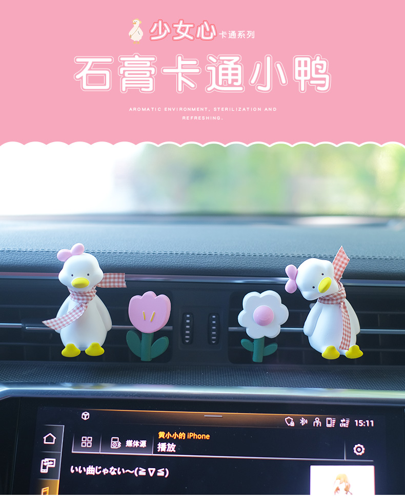 汽車空調出風口香水夾網紅鴨持久淡香可愛擴香石香薰擺件車內裝飾 5