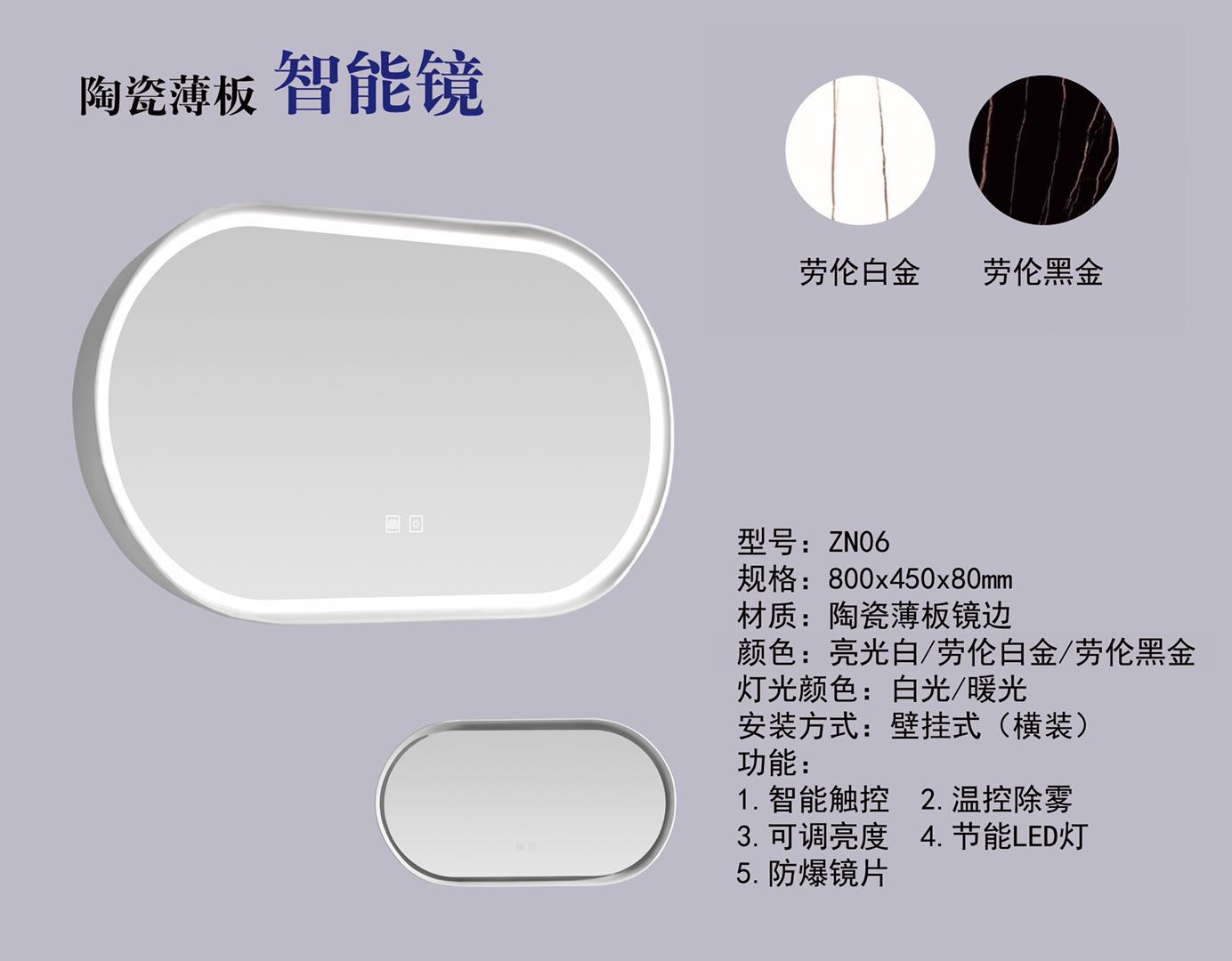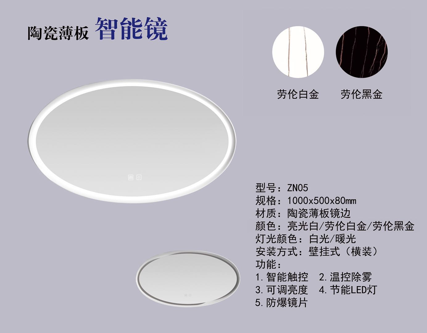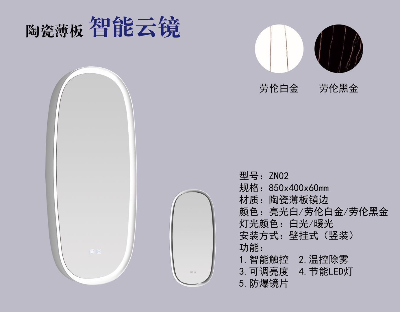 5. 蝶陶新款異形薄板智能云鏡LED穿衣美容鏡圓形化妝鏡壁掛裝飾浴室
