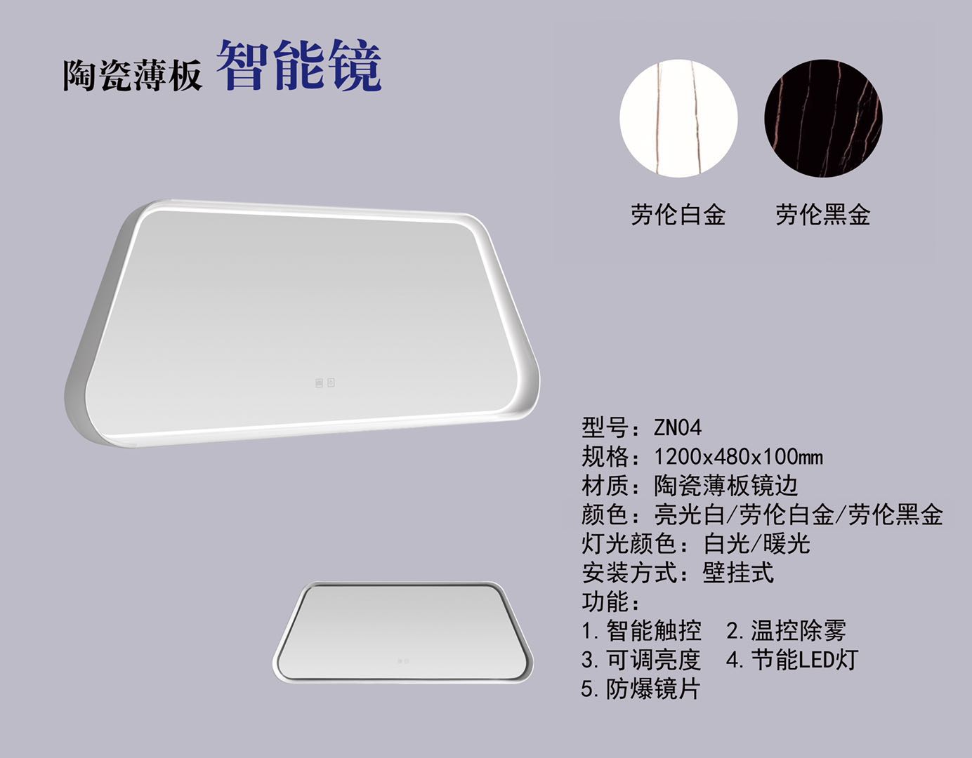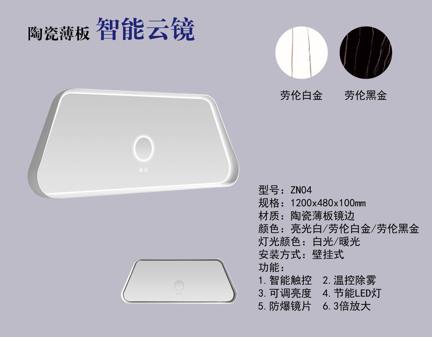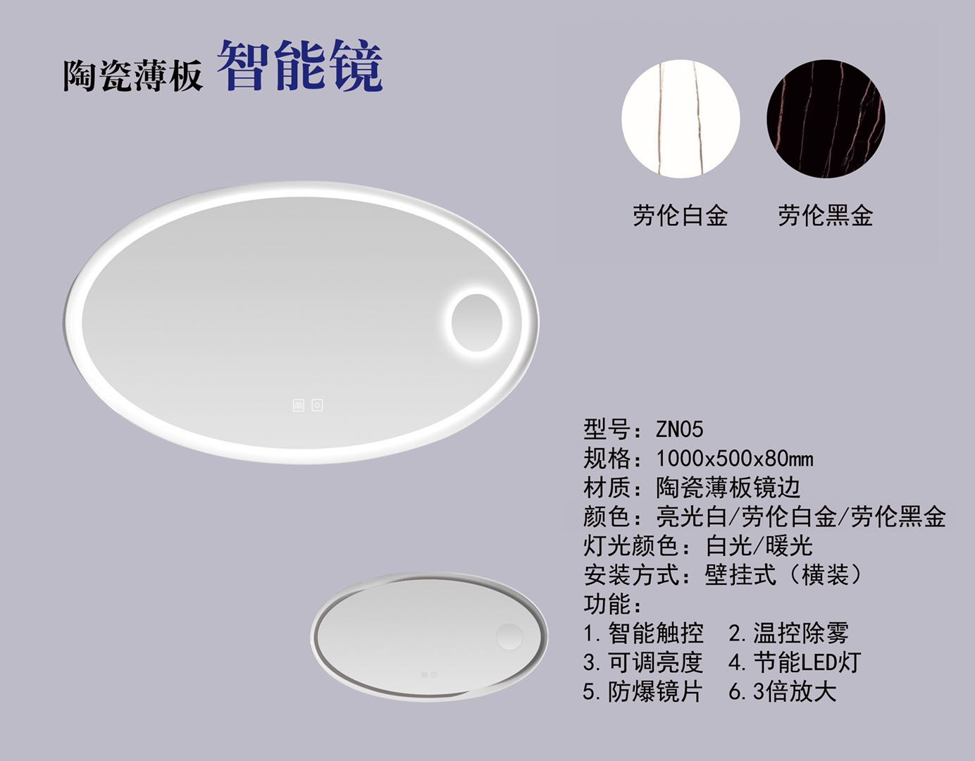 5. 蝶陶新款異形薄板智能云鏡LED穿衣美容鏡圓形化妝鏡壁掛裝飾浴室