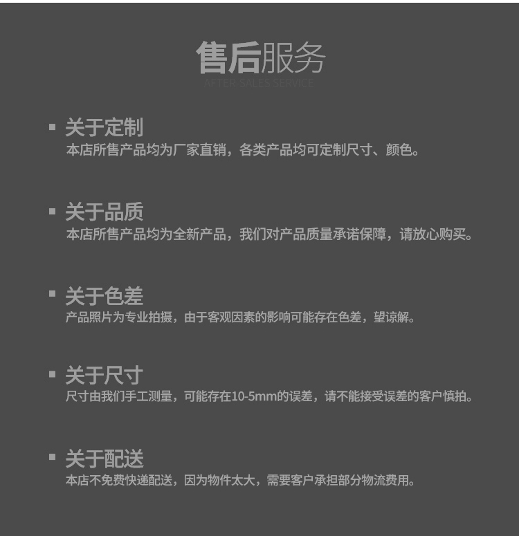 三、在您收到貨品後,請儘速確認您所訂購的商品,如有非人為因素所致之商品損毀、刮傷、或運輸過程造成包裝破損不完整的情形,請您儘速通知本公司客服人員,我們會進行商品瑕疵或損壞鑑定,並儘速為您更換新品。