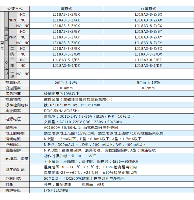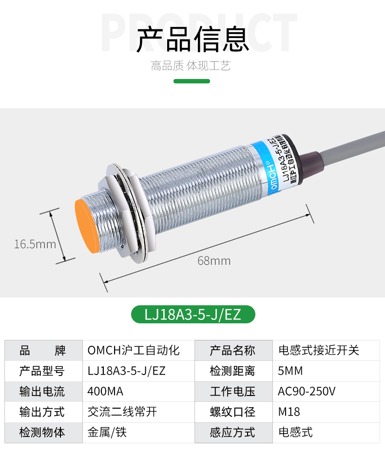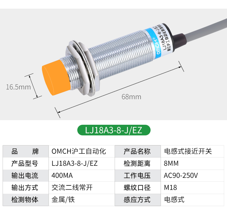 滬工接近開關LJ18A3-8-J/EZ金屬傳感器220V交流二線常開電感式m18
