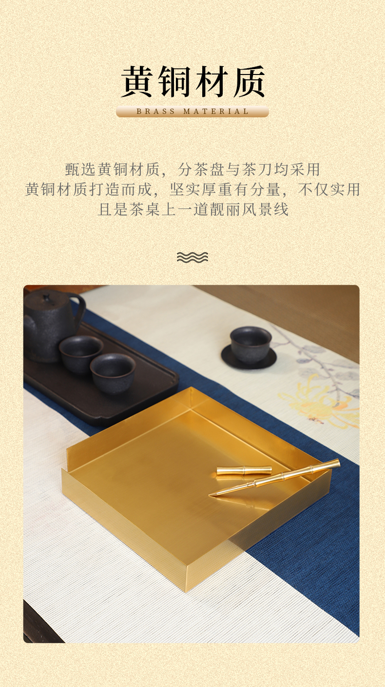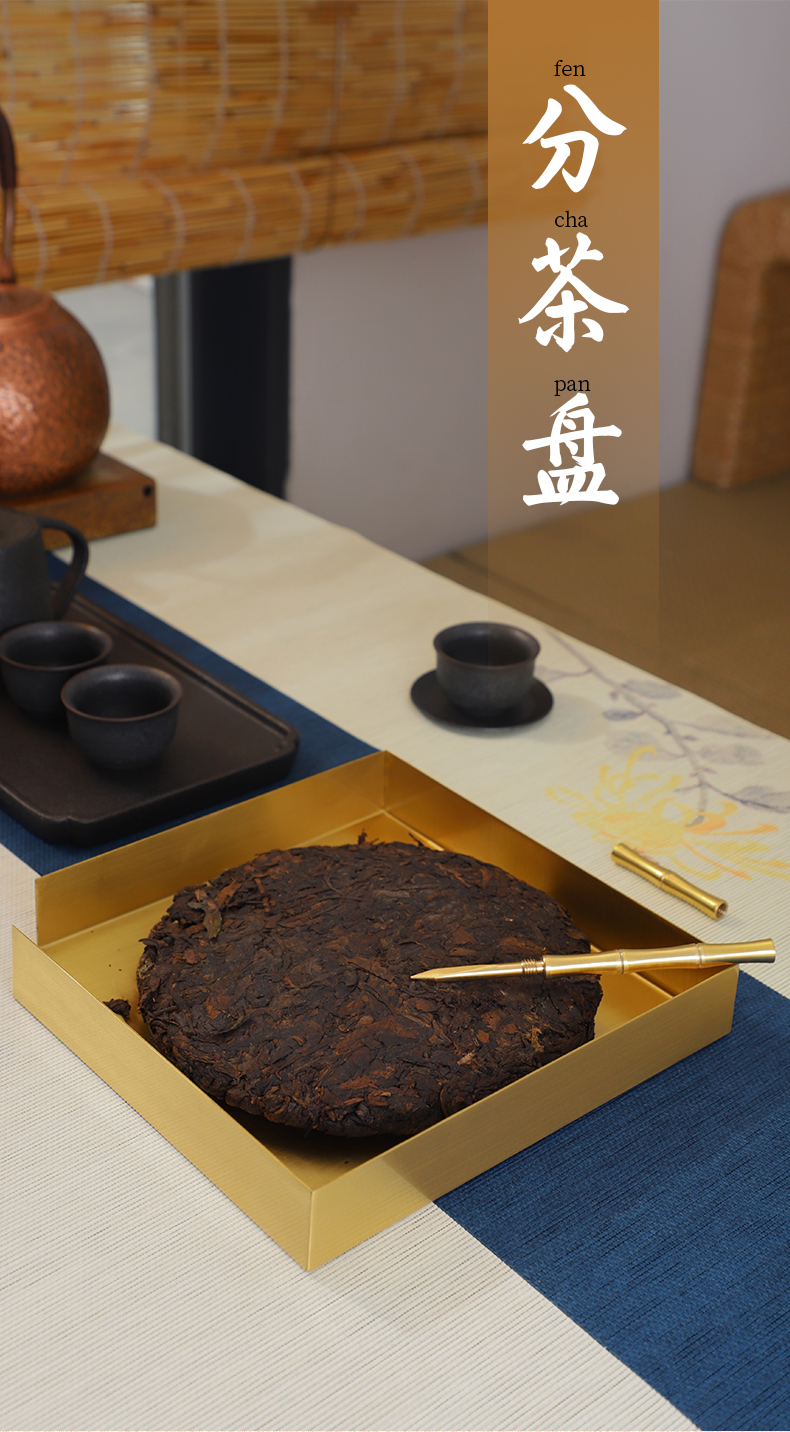 普洱茶餅盤分茶盤黃銅開茶器茶餅托盤收納分茶器茶具配件撬茶餅