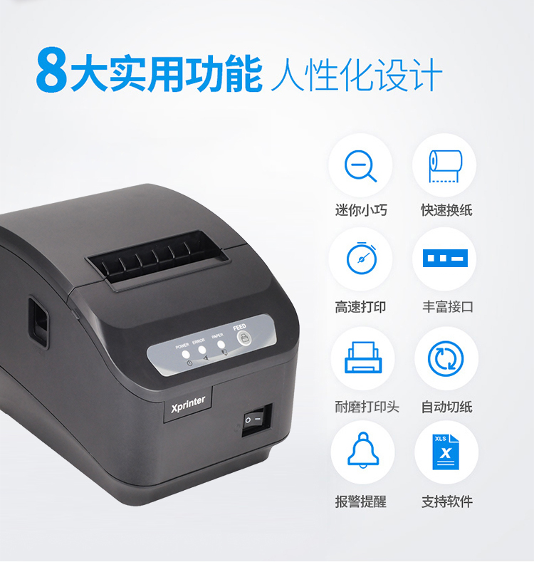 芯燁Q200II熱敏打印機小票據80mm餐飲超市收銀網口切刀廚房打印機