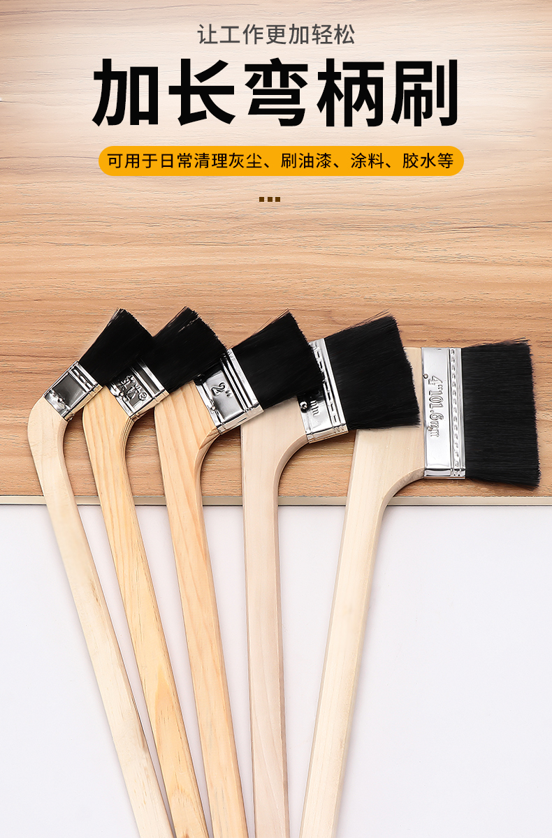 彎柄毛刷長柄黑毛刷彎頭刷船刷油漆刷灰塵1.5寸-4寸清潔工具神器