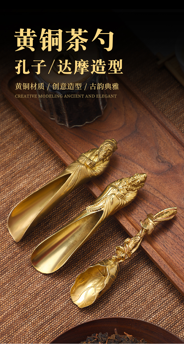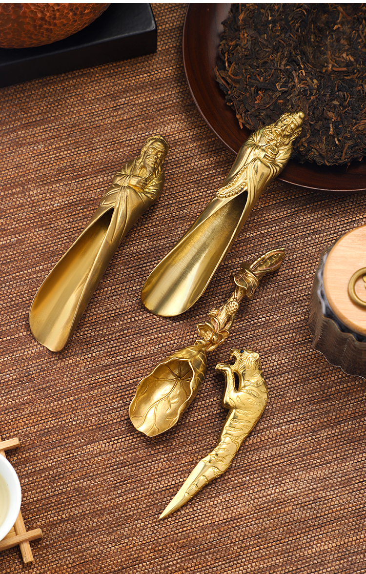 黃銅茶勺茶鏟茶具配件茶葉茶匙茶則取茶器茶具用品茶刀茶餅開茶器