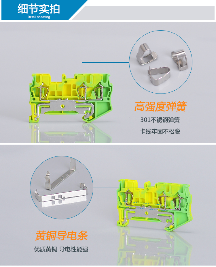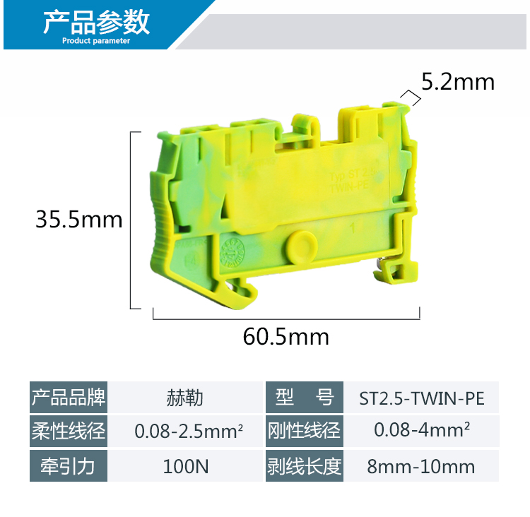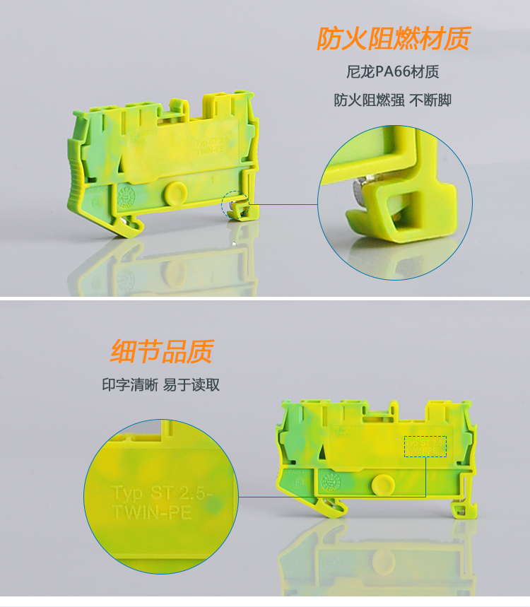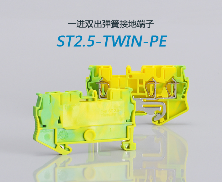 ST2.5TWIN PE黃綠彈簧式一進二出接地端子排導軌式1進2出快速接線