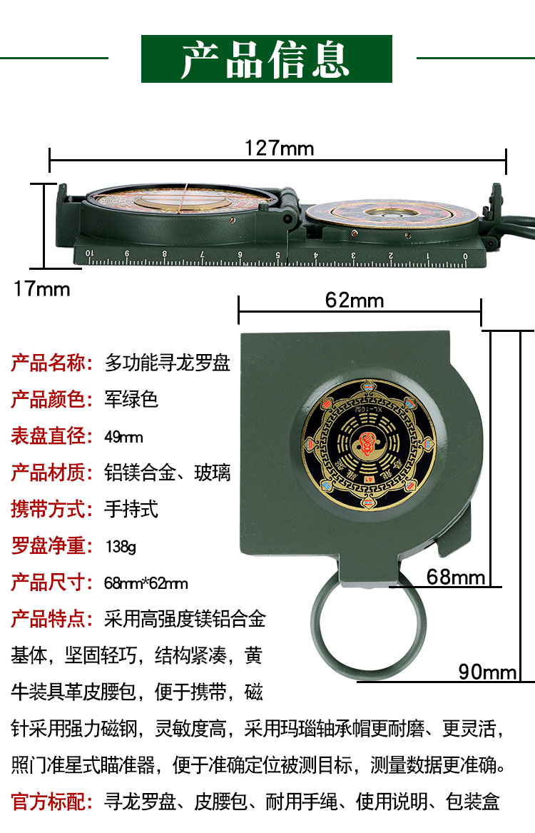 風水閣尋龍羅盤多功能指南針戶外指北針專業地質羅盤儀高精度運動
