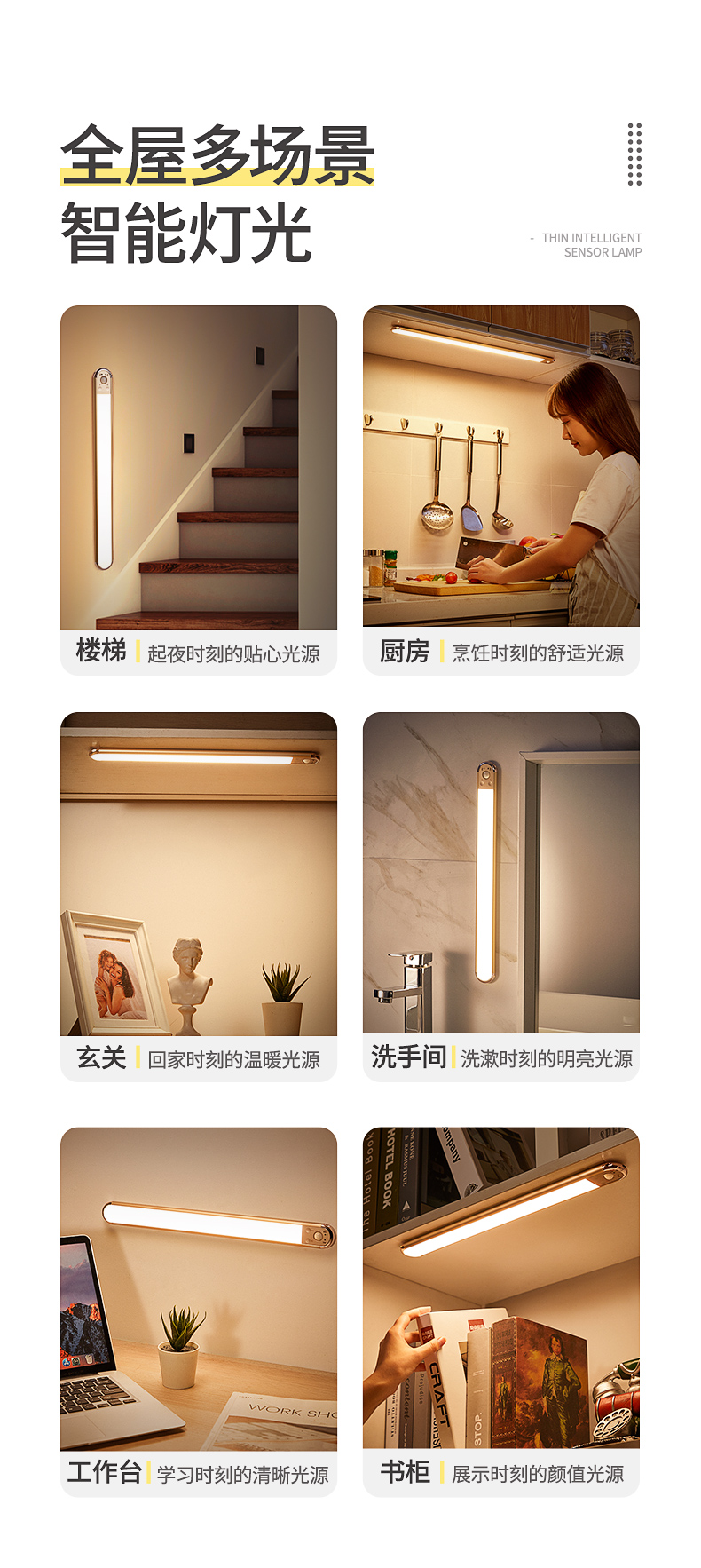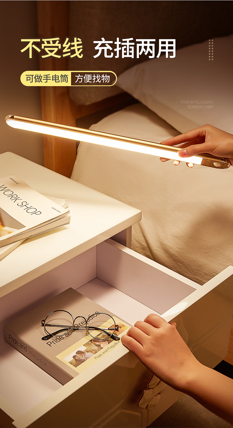 智能人體感應墻壁燈充電陽臺樓梯廁所新款衛生間免布線免接線