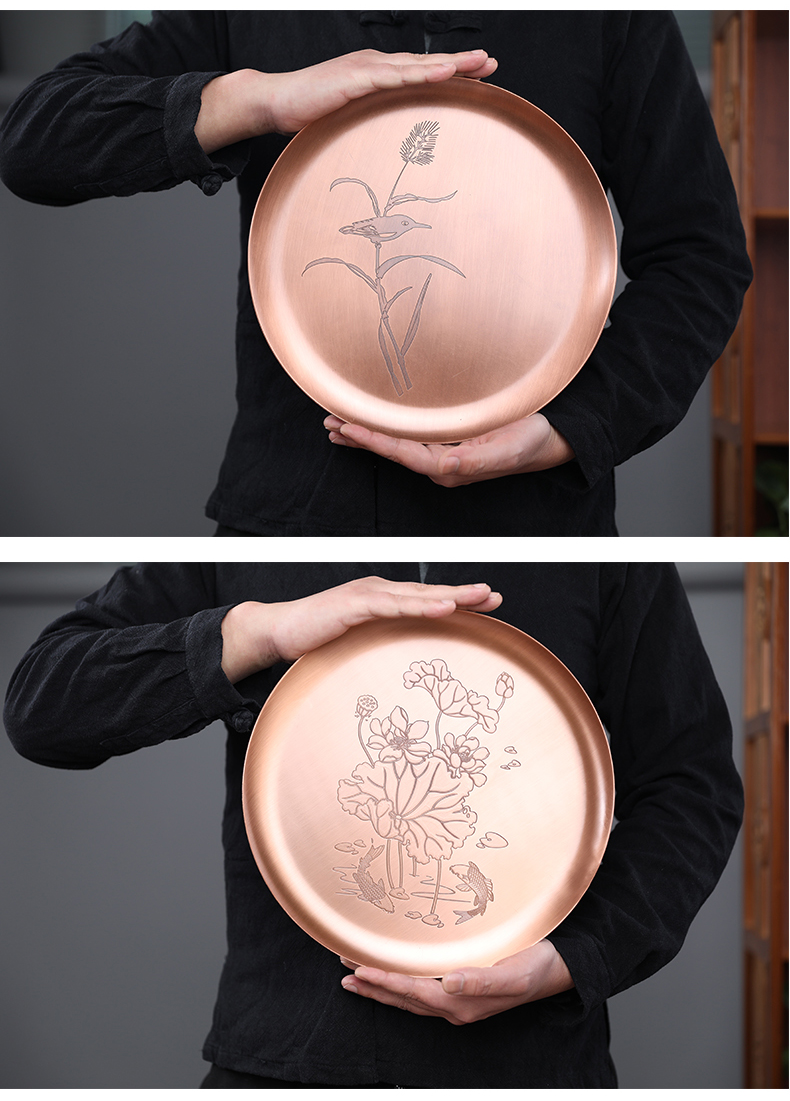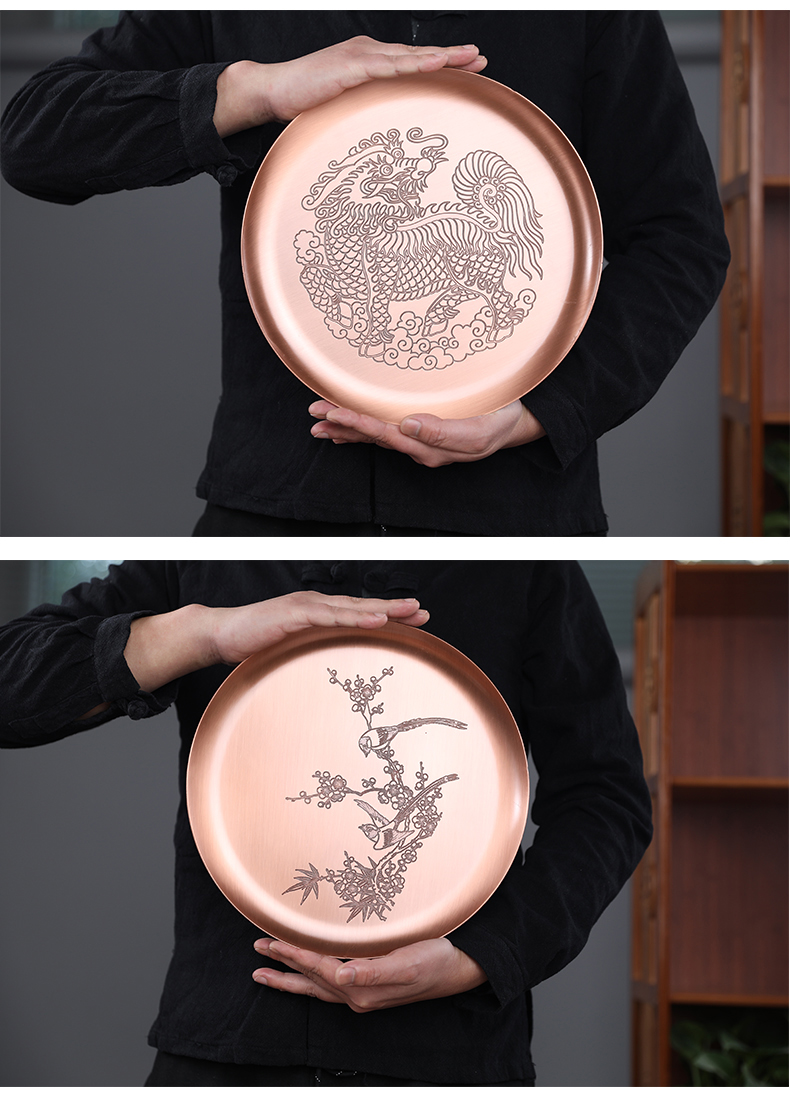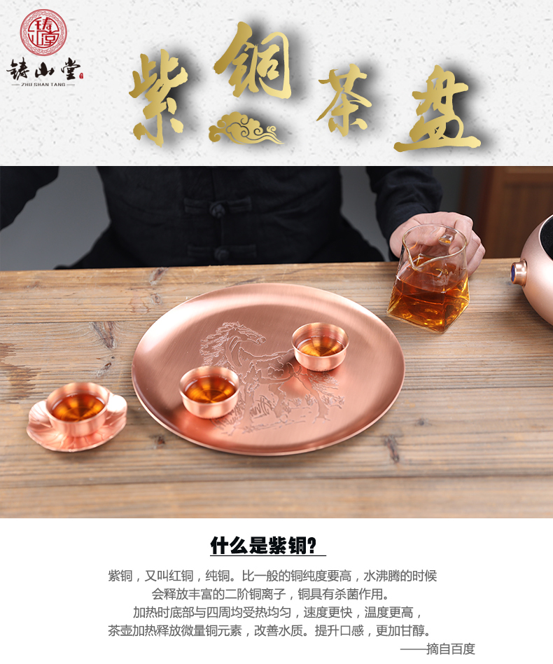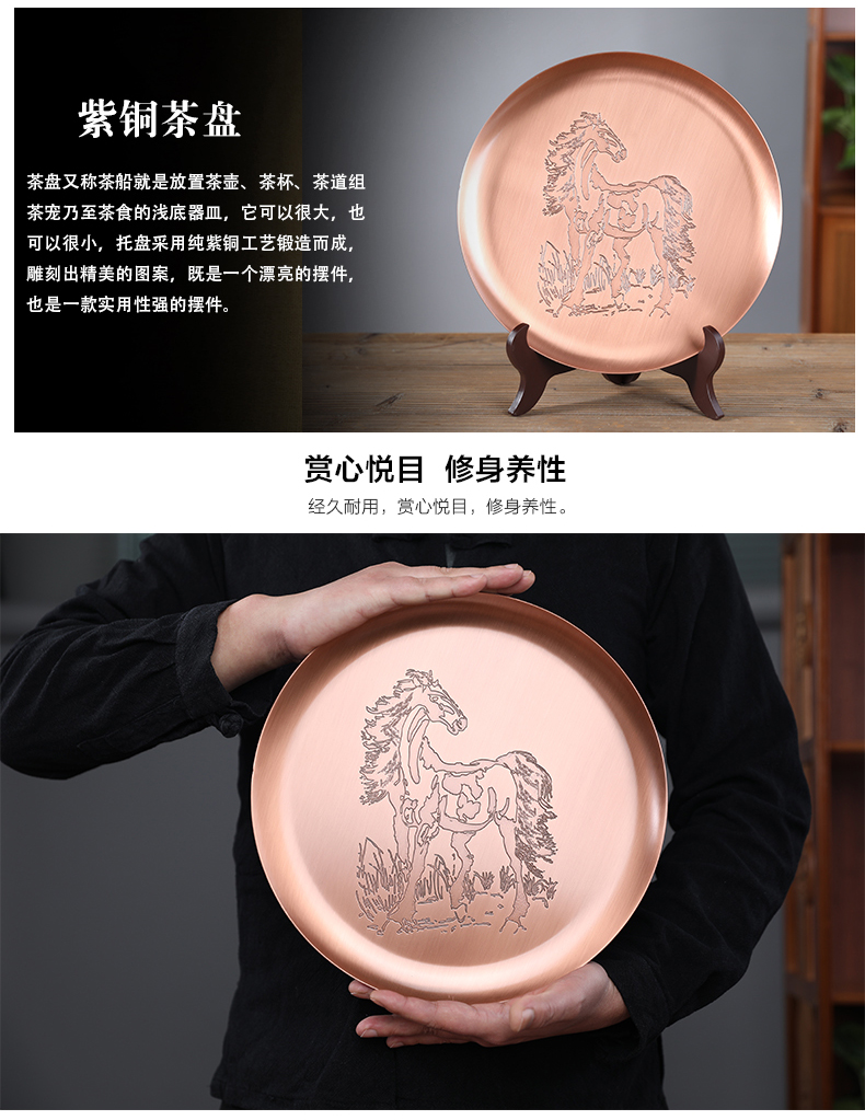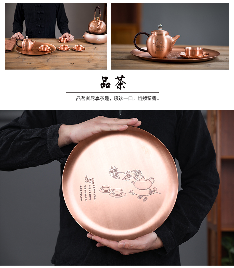 鑄山堂紫銅茶盤圓形壺承干泡盤茶托盤壺墊功夫茶具擺件裝飾零配件