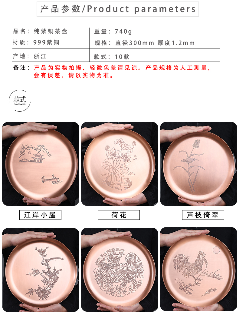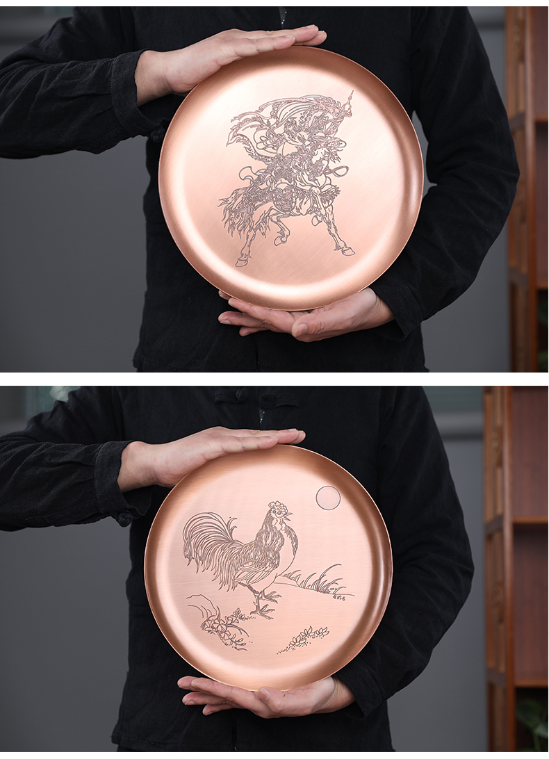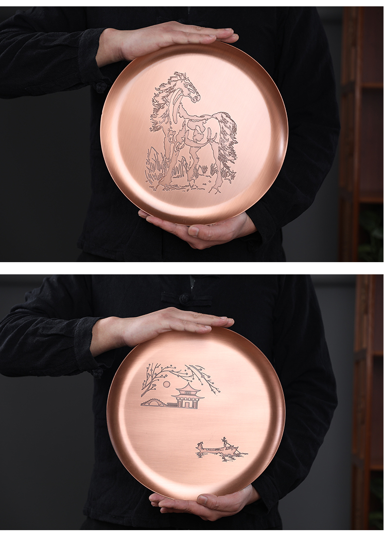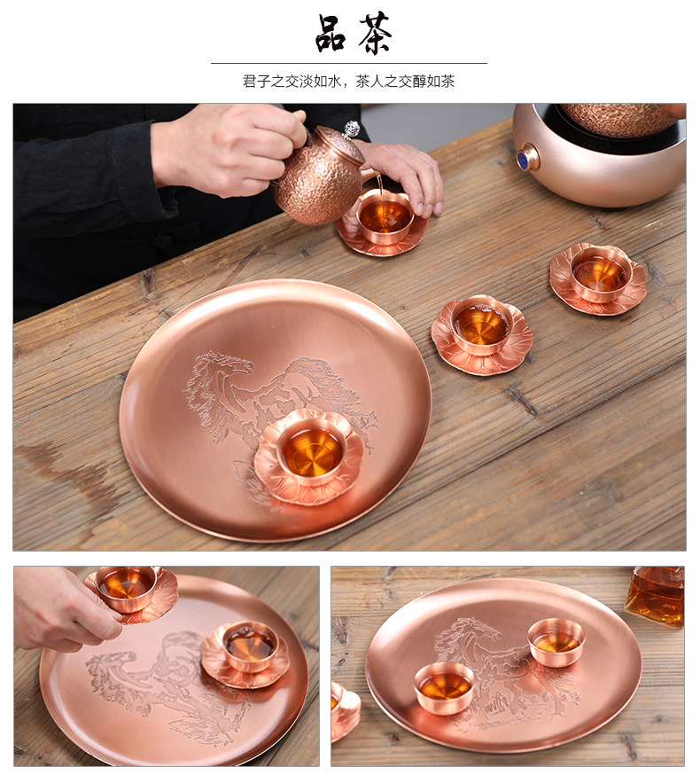 鑄山堂紫銅茶盤圓形壺承干泡盤茶托盤壺墊功夫茶具擺件裝飾零配件