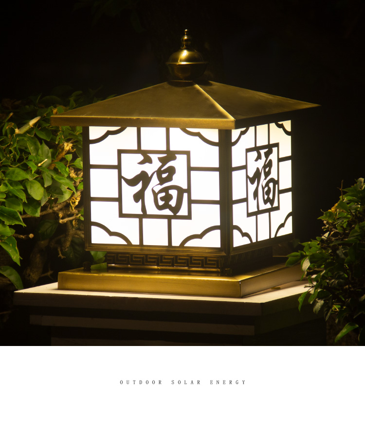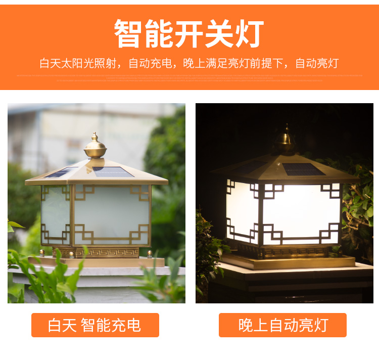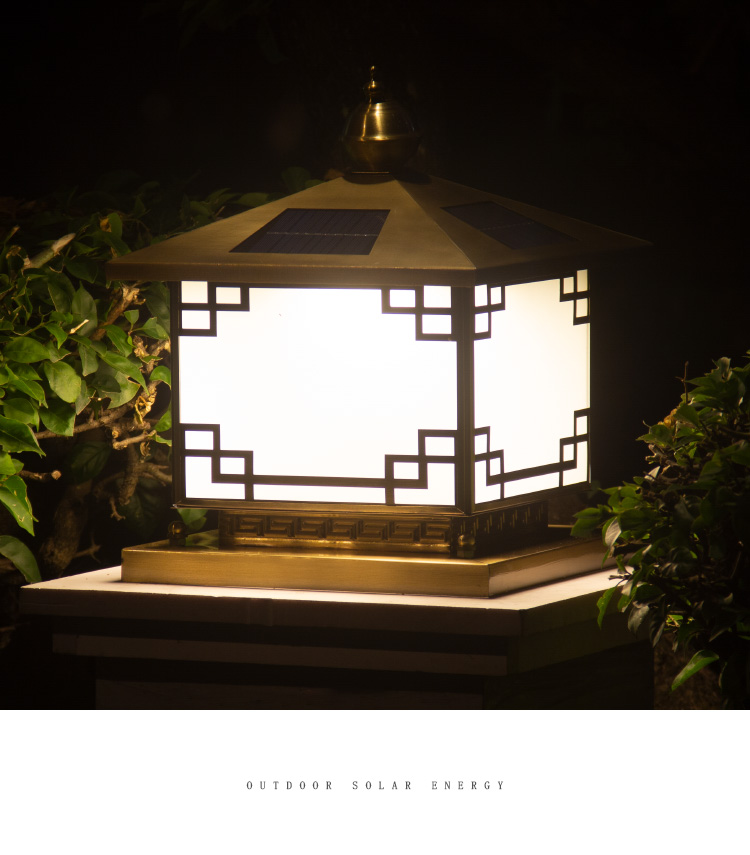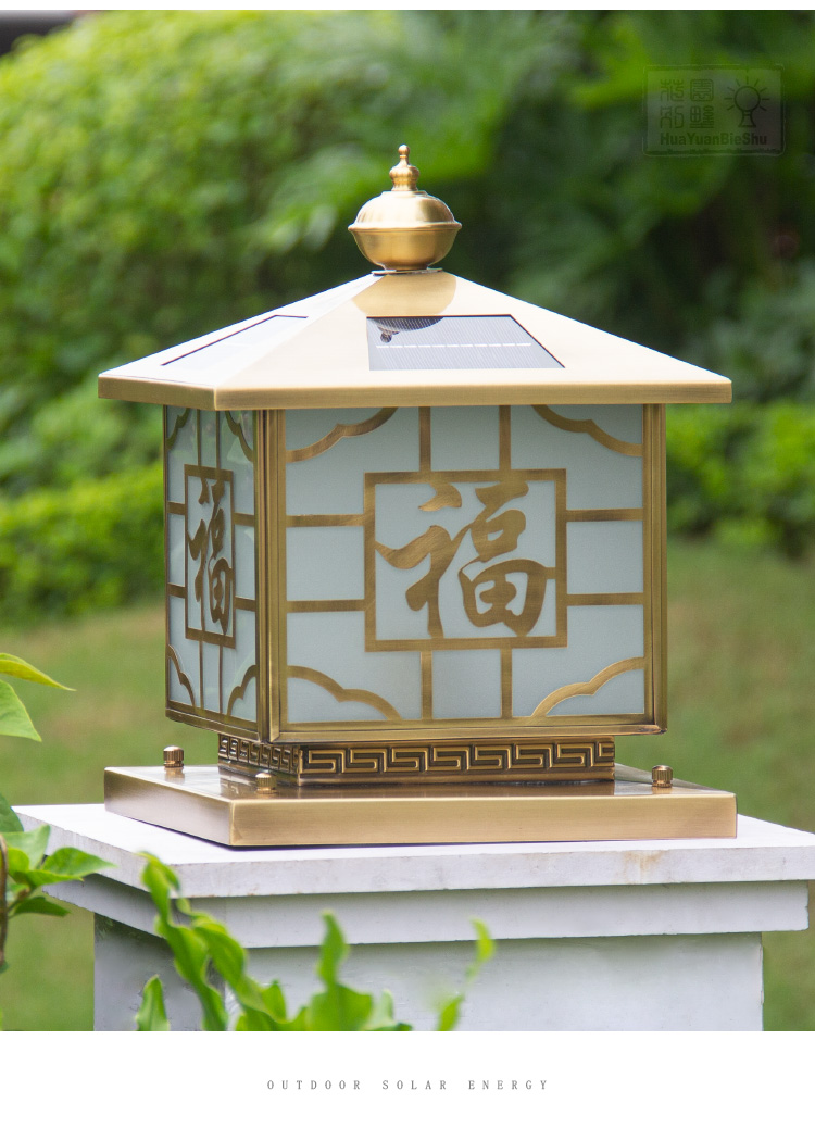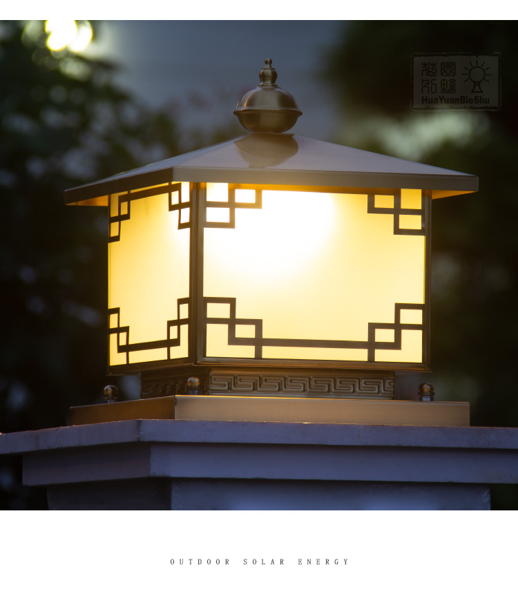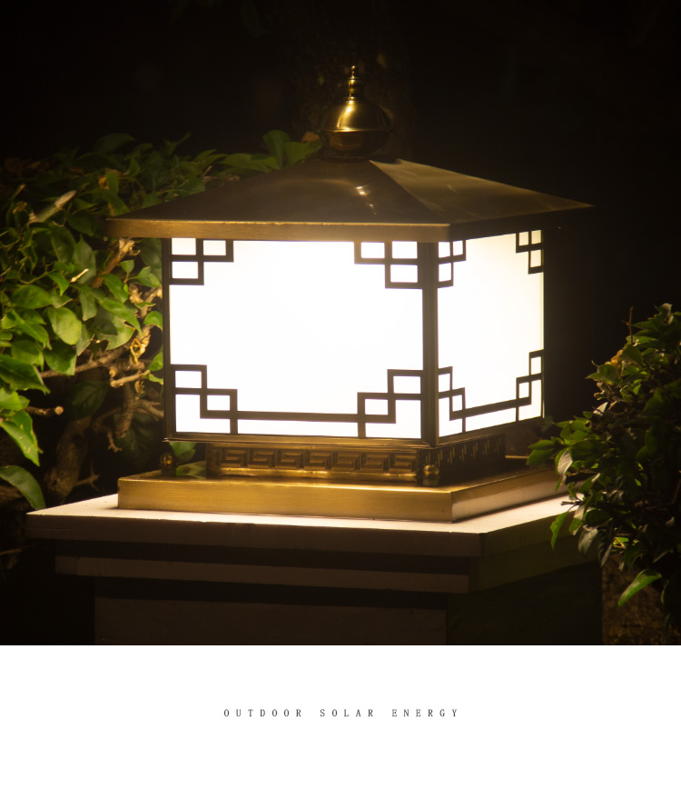 太陽能燈全銅柱頭燈歐式大門銅燈戶外防水庭院燈圍墻燈別墅門柱燈