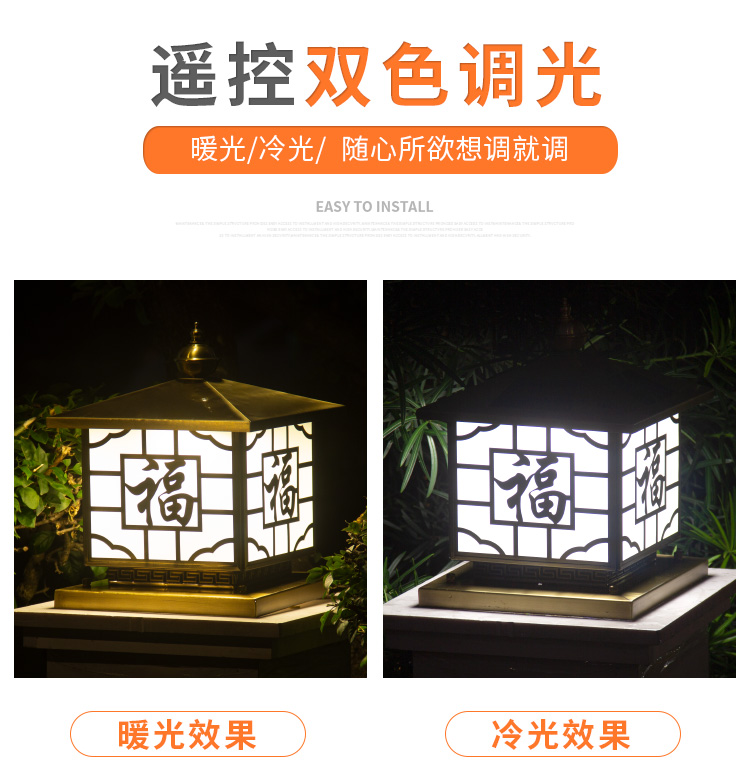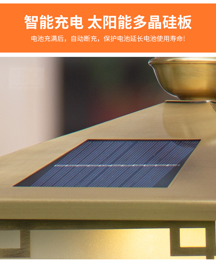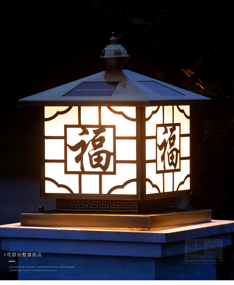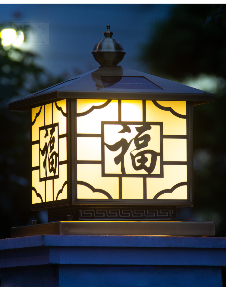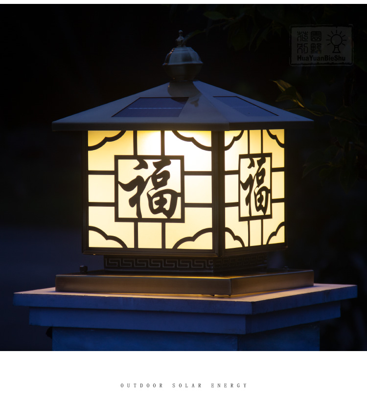 太陽能燈全銅柱頭燈歐式大門銅燈戶外防水庭院燈圍墻燈別墅門柱燈