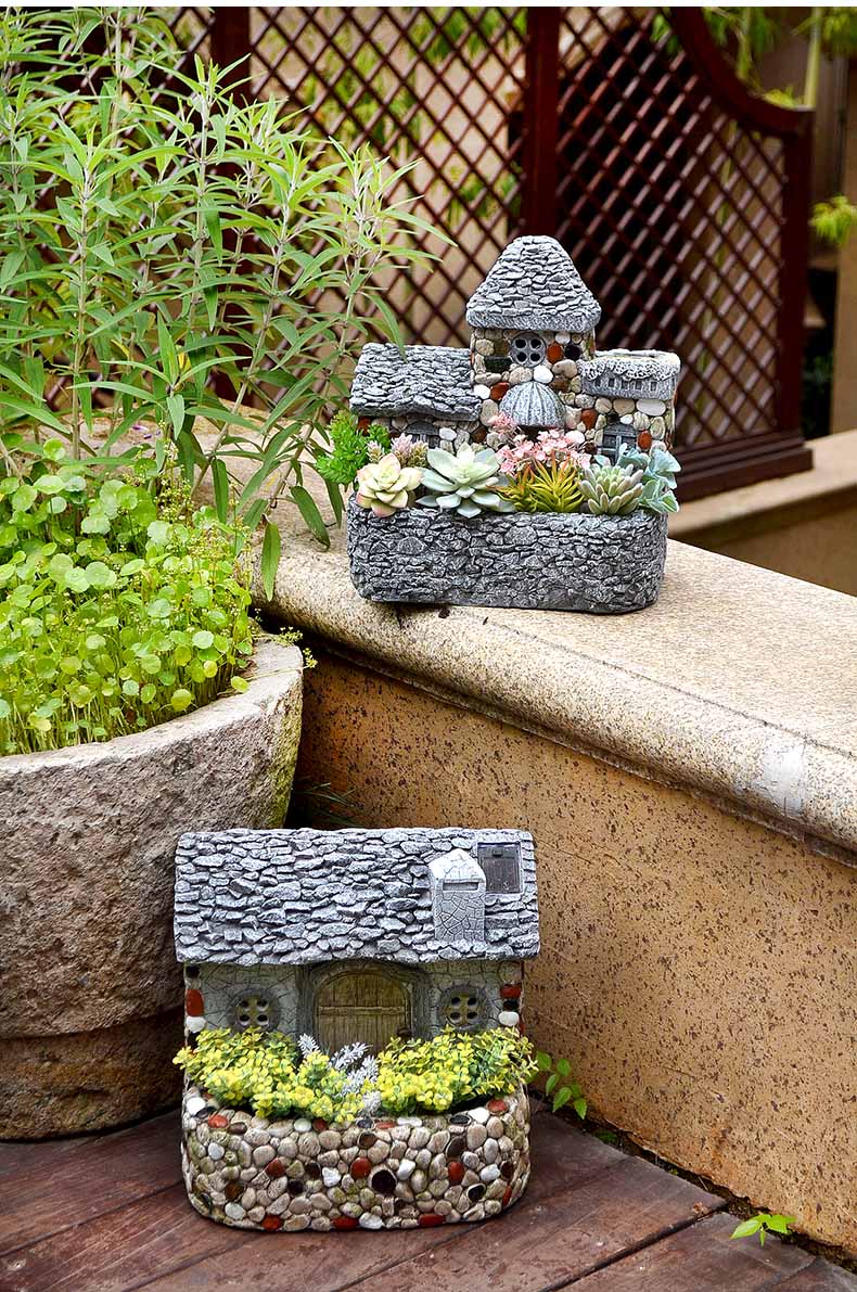 戶外創意草坪裝飾品別墅園林庭院房子蝸牛雕塑花園微景觀花盆擺件