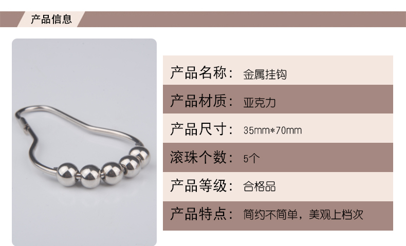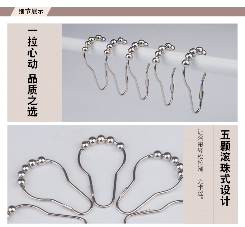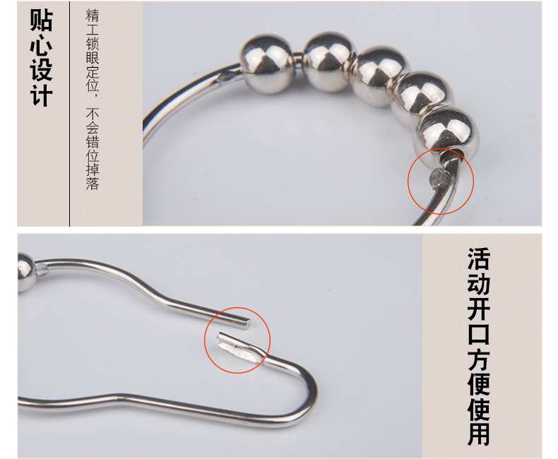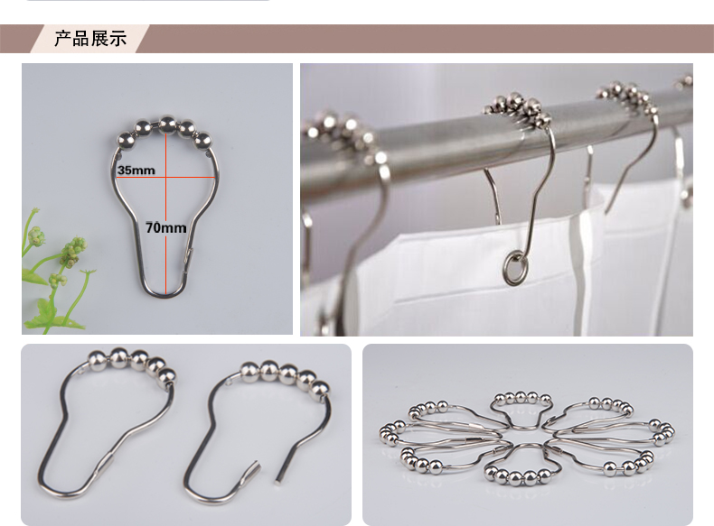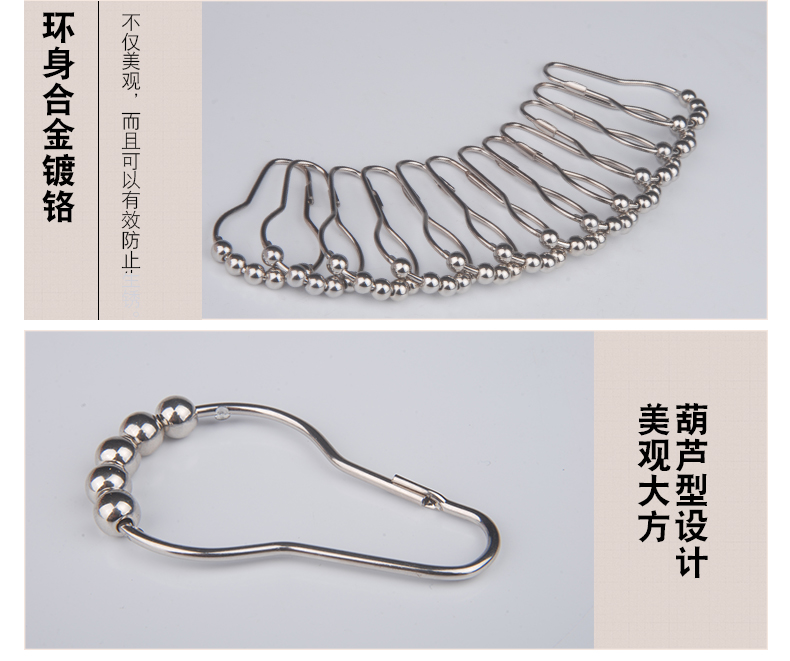 未來式衛生間滾珠浴簾掛鉤環不銹鋼葫蘆五銖大號浴簾掛鉤