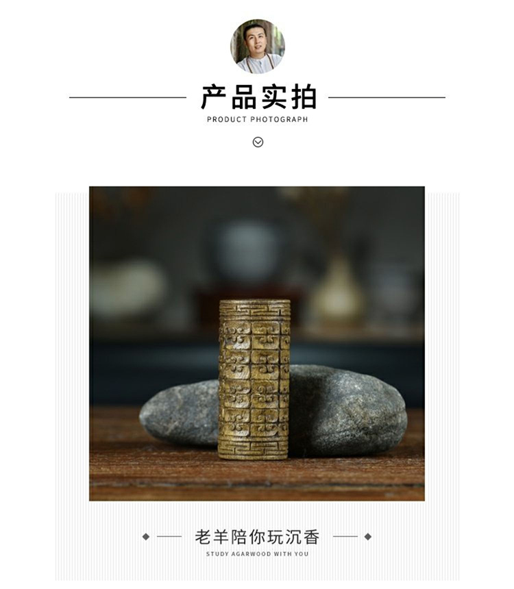 手工雕刻沉香天珠如意加里曼丹油老料手把件勒子背云掛件吊