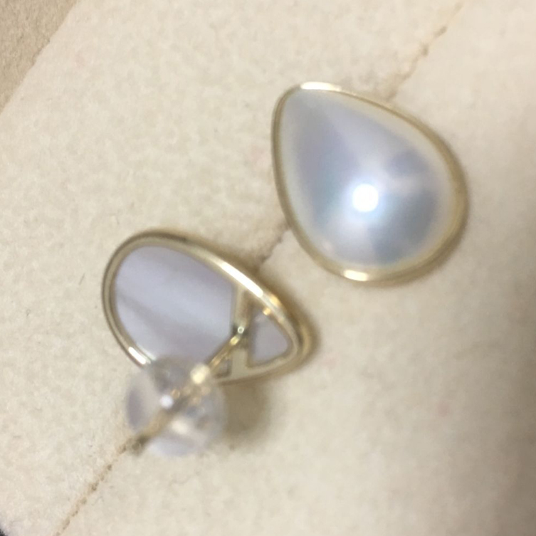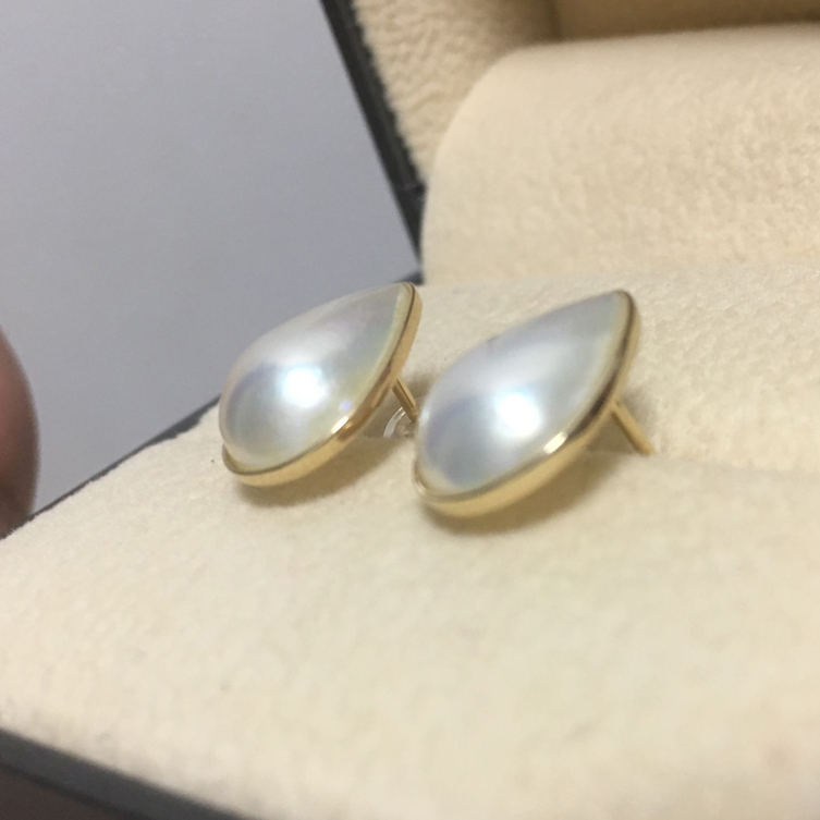 18K金水滴馬貝耳環耳釘白色極光炫彩水滴形馬貝天然海水